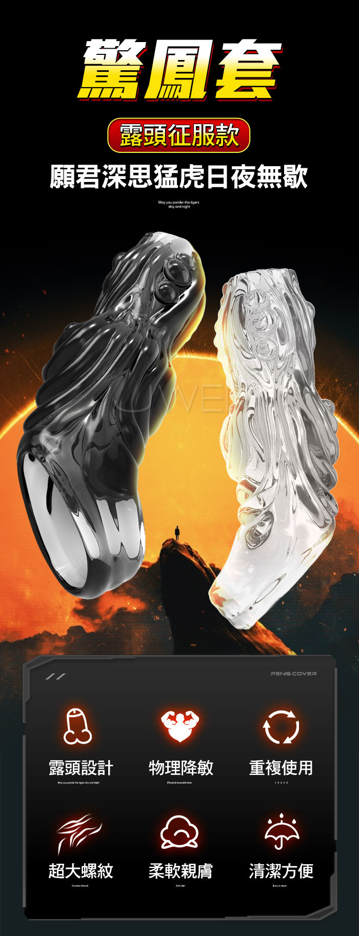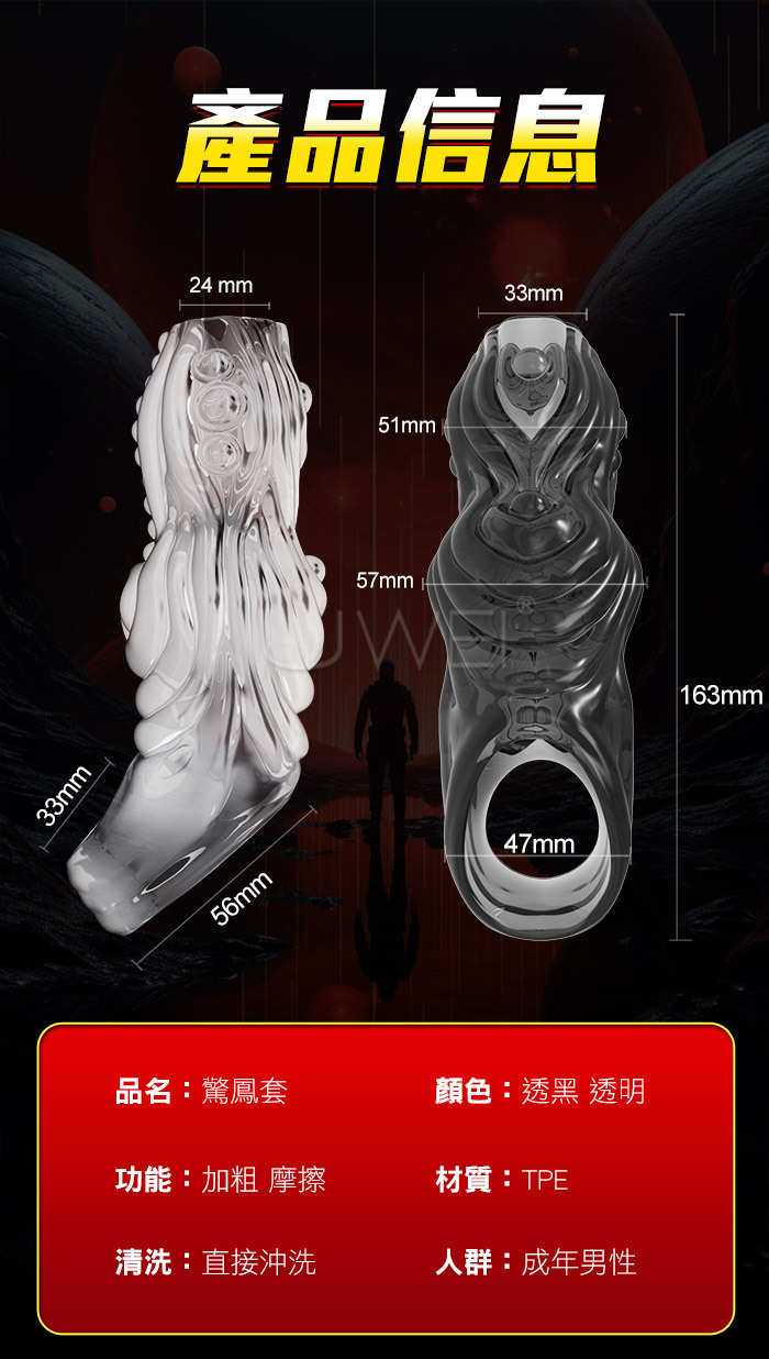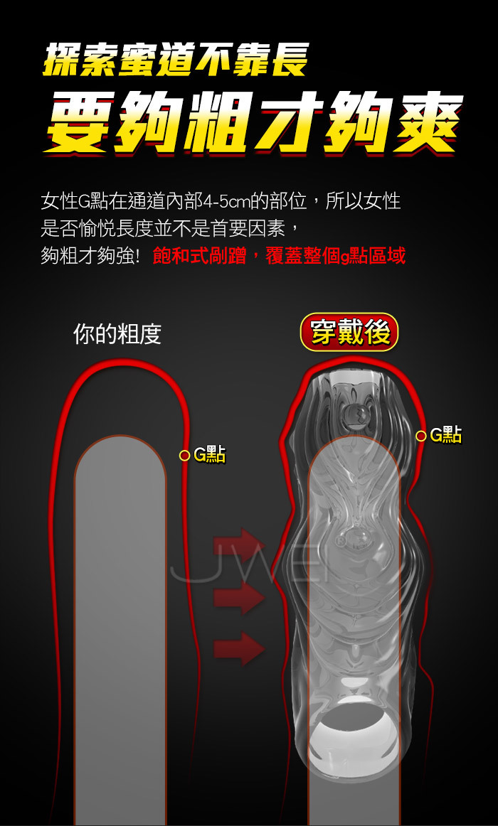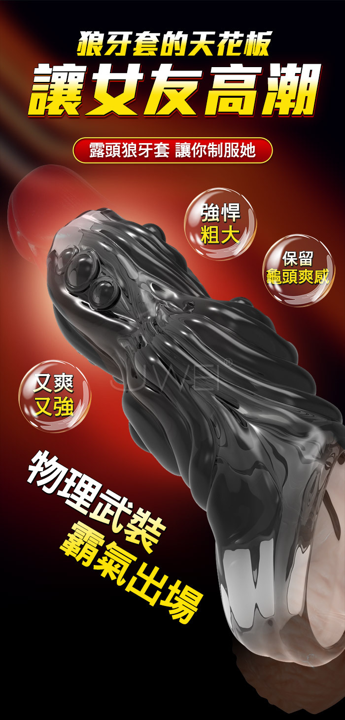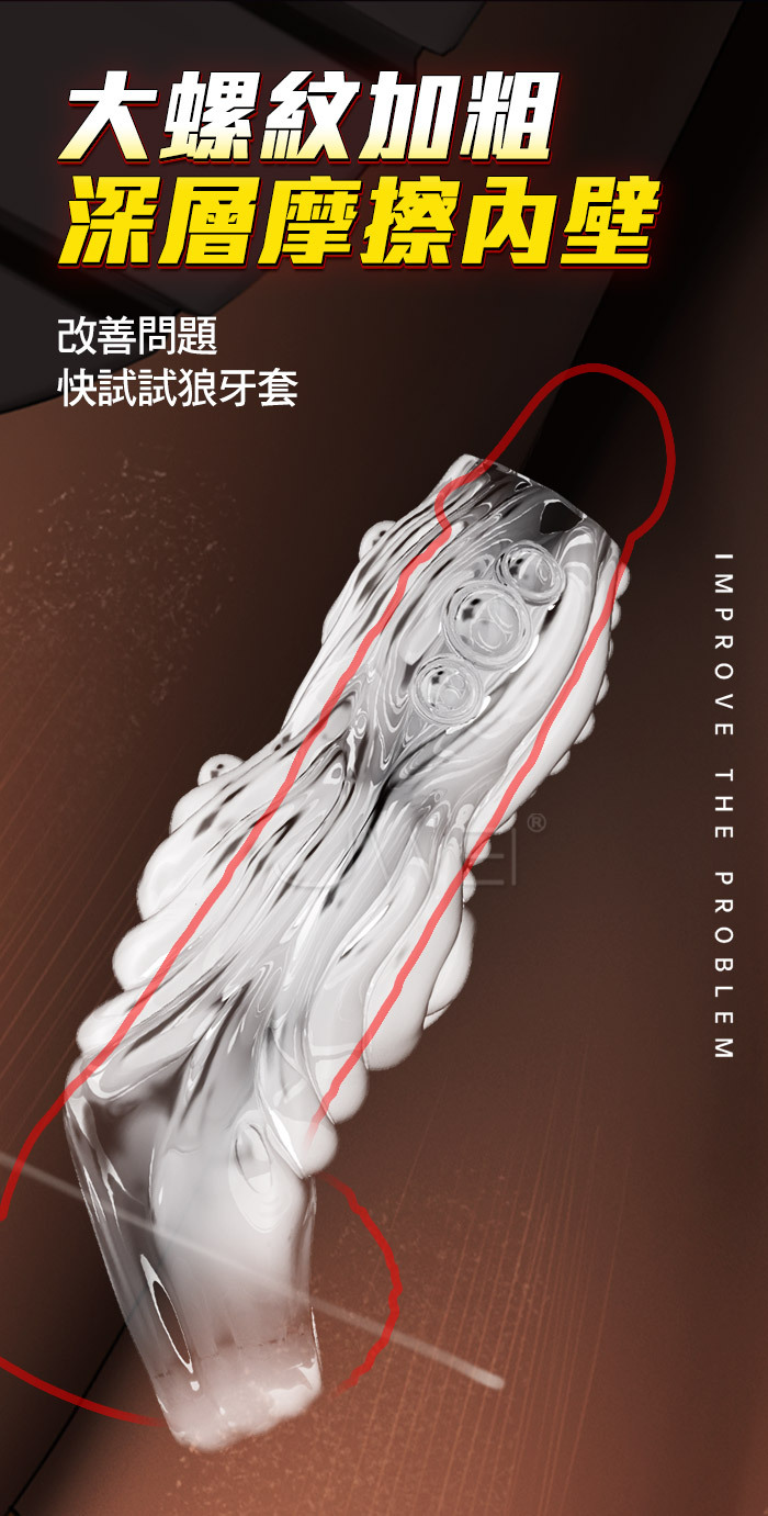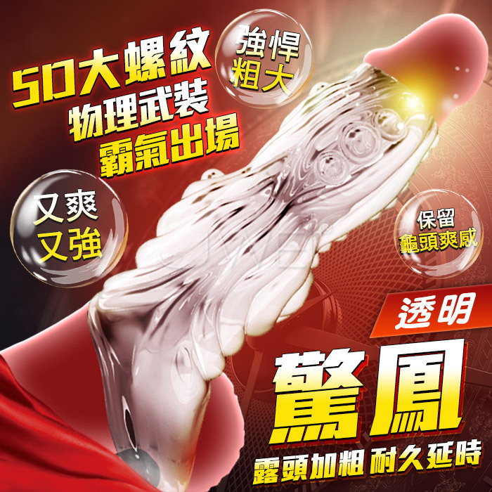 驚鳳.雙開口防脫 5D大螺紋 加粗鎖莖狼牙套-透明色