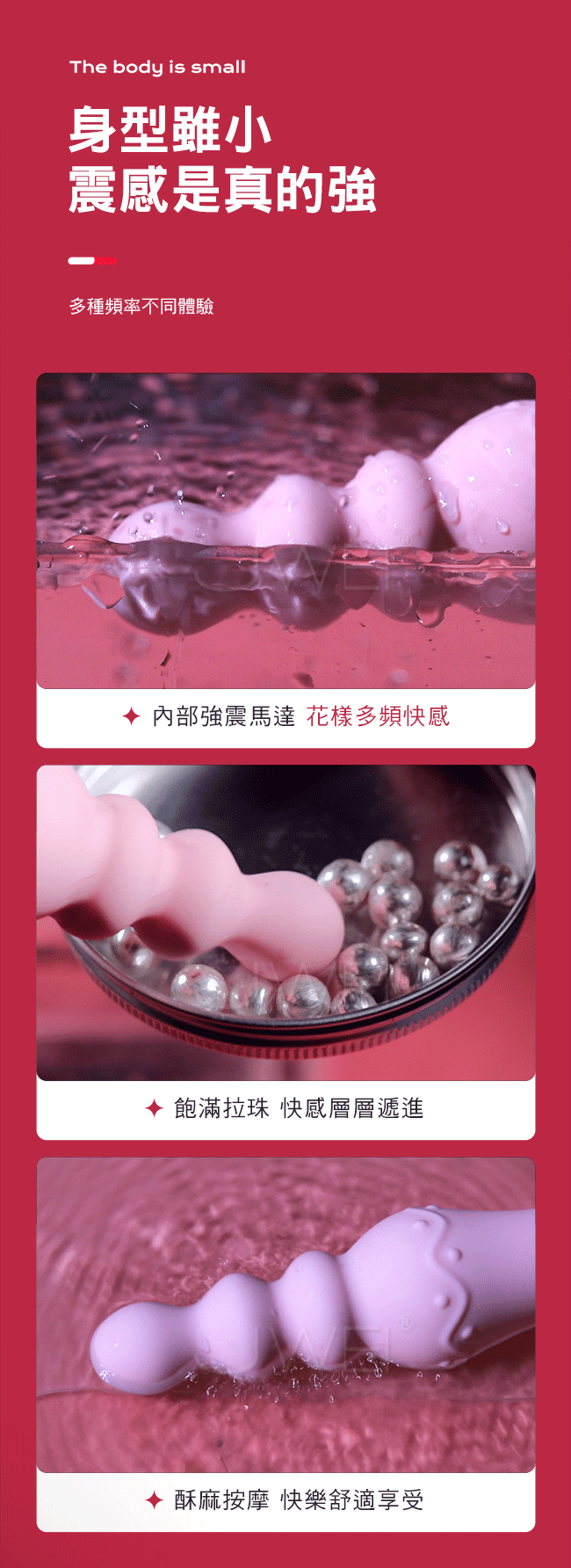 解鎖新玩法後庭の慾望狂想,漸進拉珠設計新手也能爽。穿戴肛塞新手開肛陰肛兩用,穿戴不影響走路。深入探G點不僅是男性後庭,女性也值得擁有唷~身型雖小震感是真的強多種頻率不同體驗喔!!小巧易入緊緊貼合內壁在後庭肆意探索快感難以言喻~