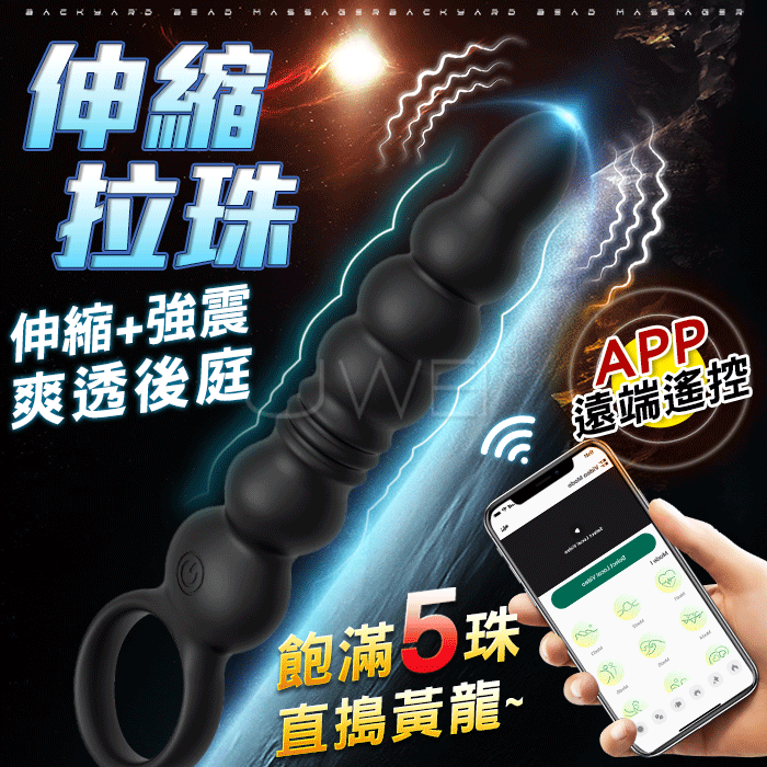 伸縮拉珠.多頻伸縮強震 5珠拉珠後庭按摩器(APP遙控)