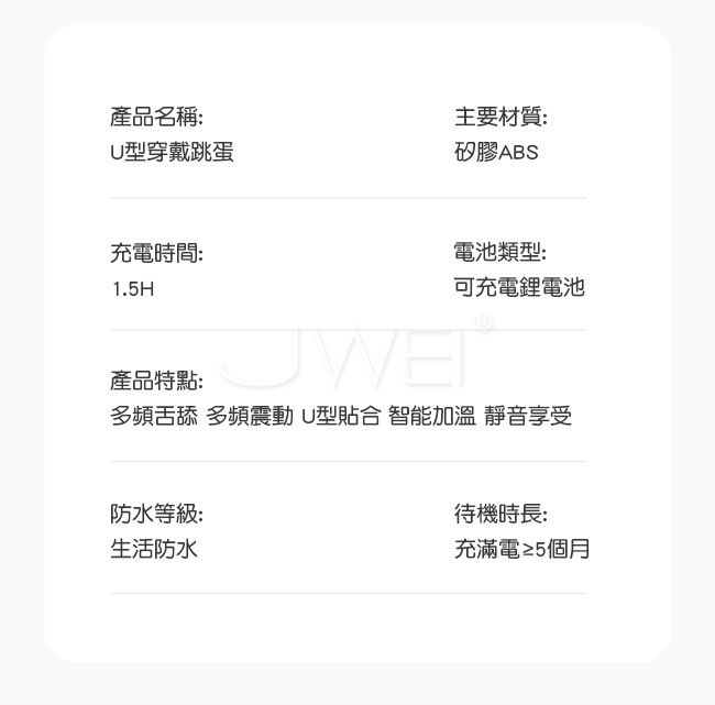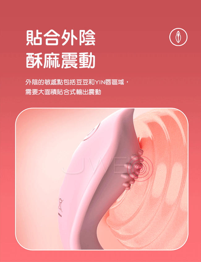 隱形穿戴,符合人體工學的U型設計,緊密貼合,外出穿戴;貼合外陰酥麻震動,外陰的敏感點包括豆豆和YIN唇區域,大面積貼合式輸出震動;智能恆溫,溫潤享受,運行時自動加溫,升溫至40度 並一直維持恆溫狀態,比男友更暖心;柔滑親膚,牛奶一般絲滑享受就是這麼舒服,從喜歡到上癮,只需一次撫摸~