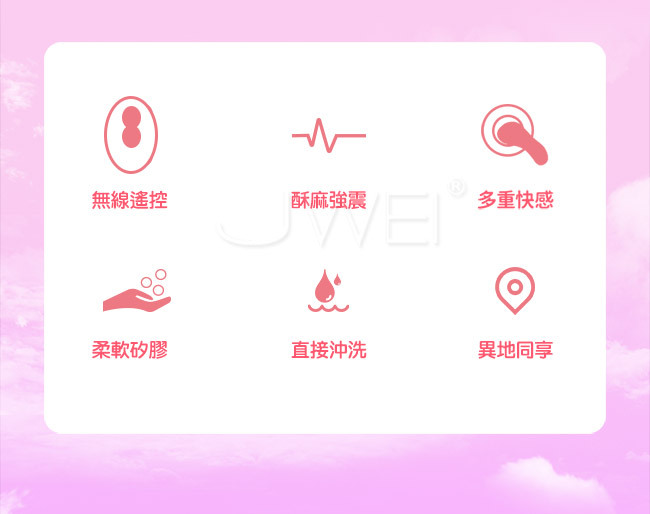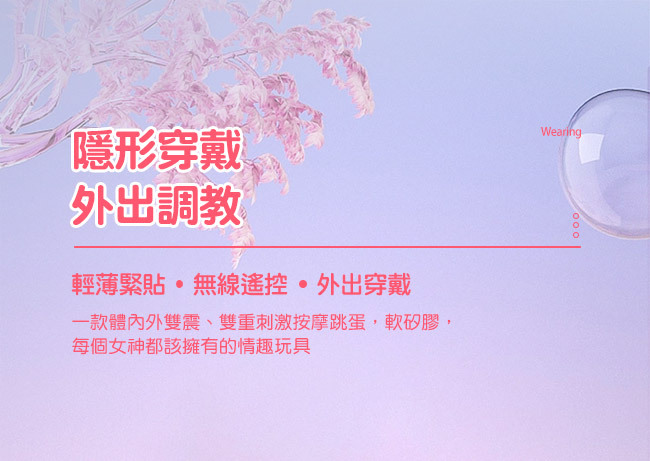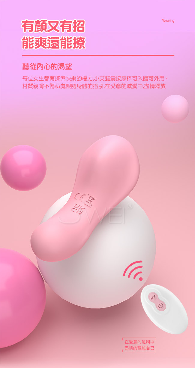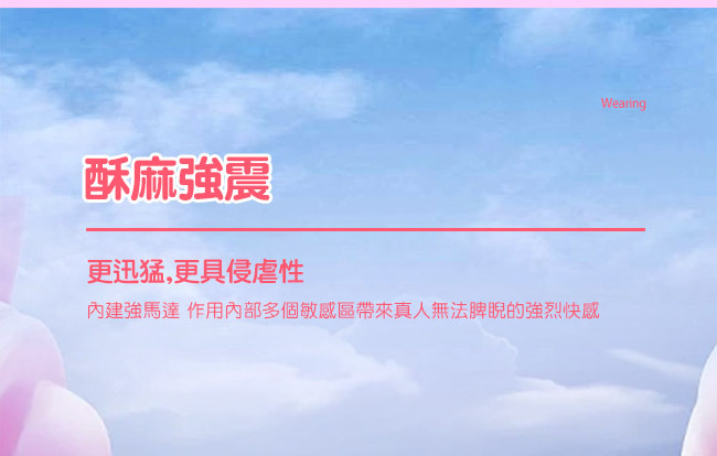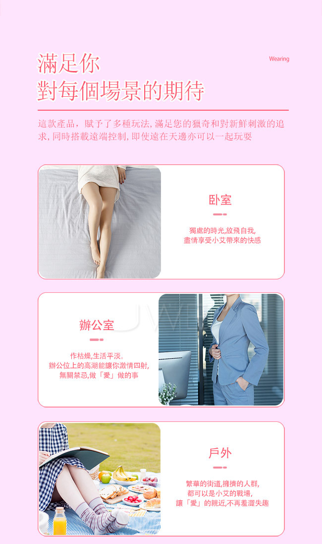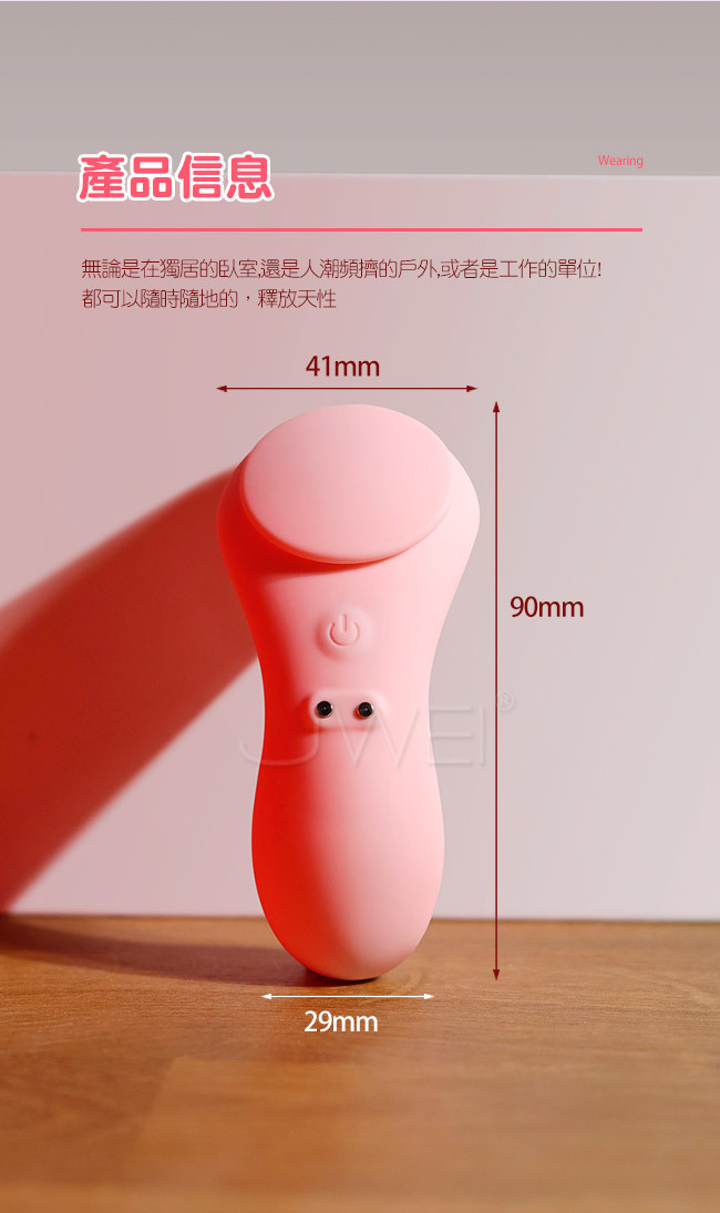 隱形穿戴外出調教,輕薄緊貼,酥麻強震,更迅猛、更具侵虐性,內建強馬達 作用內部多 個敏感區帶來真人無法脾睨的強烈快感;採用柔軟矽膠材質,柔軟親膚,不損傷私處,粉嫩 肌膚使用時無異物感,很舒服,在愛意的滋潤中,盡情釋放!一款體內外雙震、雙重刺激按 摩跳蛋,萌趣造型專為女性樂趣打造每位女神都該擁有的情趣玩具;全身生活防水,即使波 濤洶湧也能持續 「戰鬥魚水之歡,自得其樂,無論是在獨居的臥室,還是人潮頻擠的戶外 ,或者是工作的單位! 都可以隨時隨地的,釋放天性!