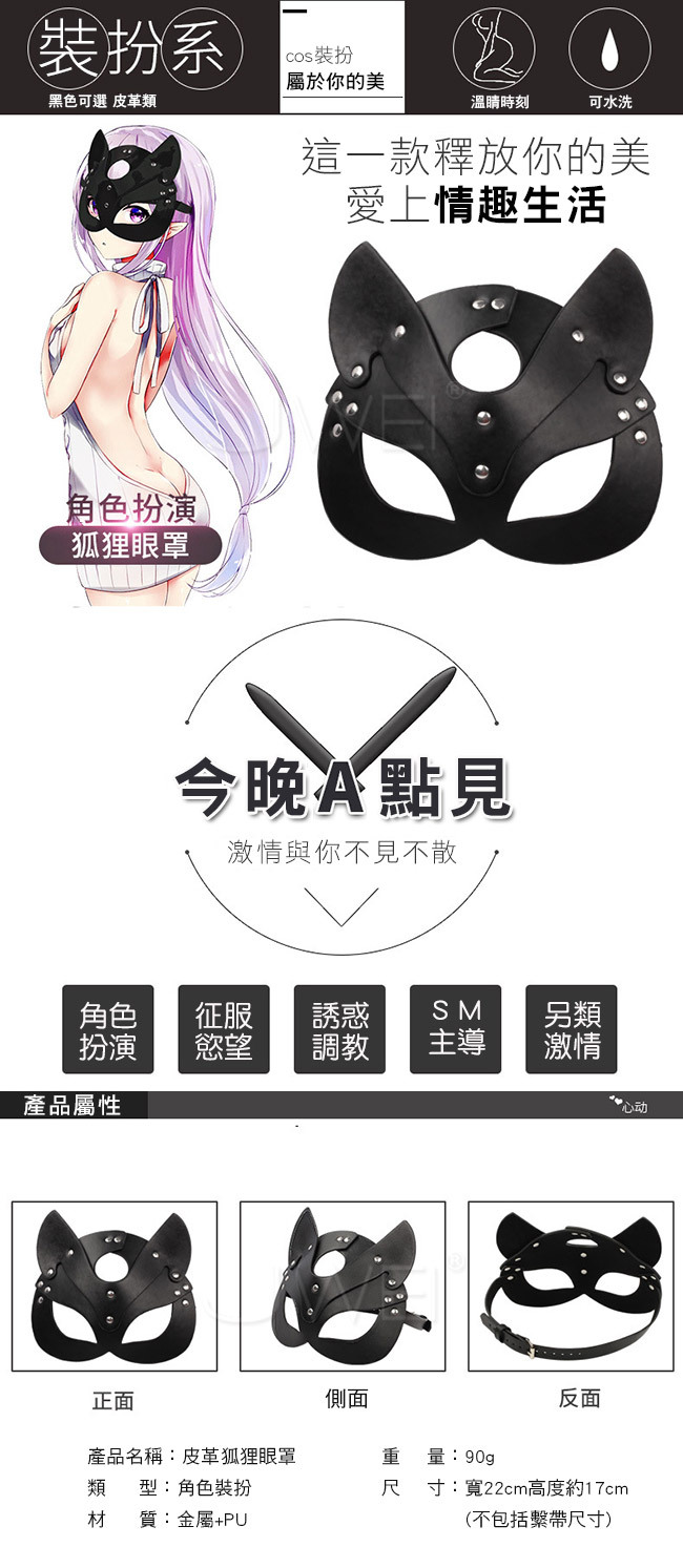 SM閨房情趣‧ 狐狸眼罩 派對舞會夜店化妝舞會面具裝扮﹝環保PU加厚皮革﹞