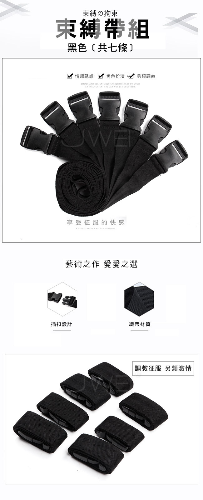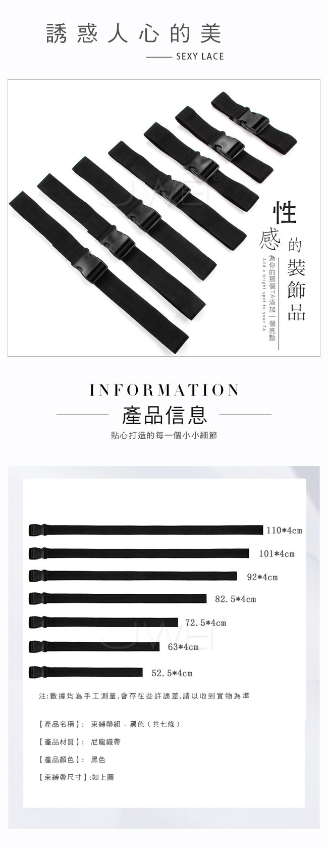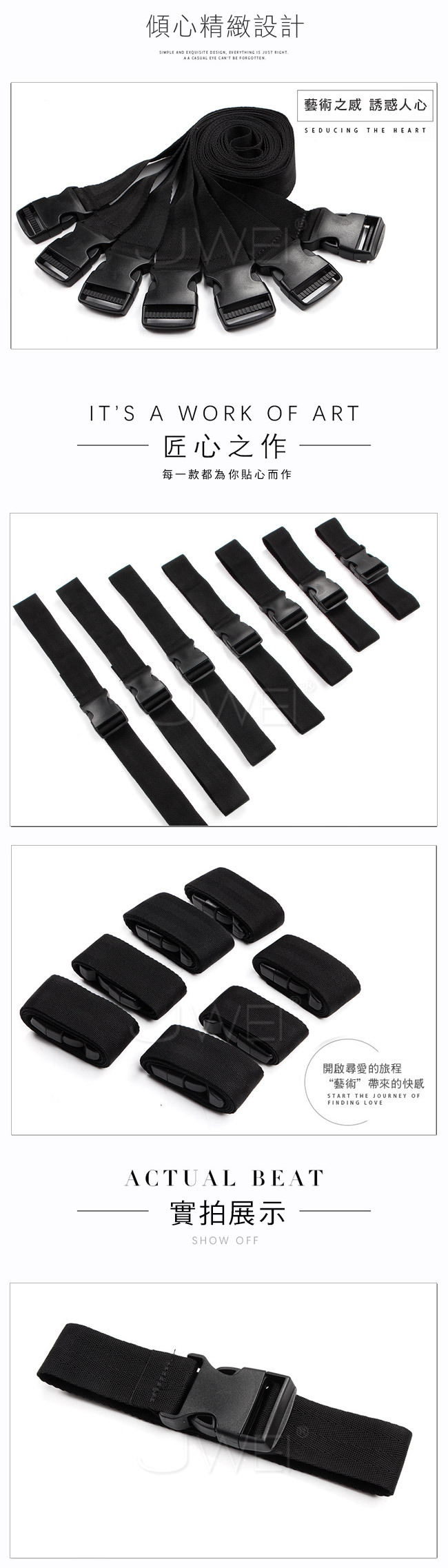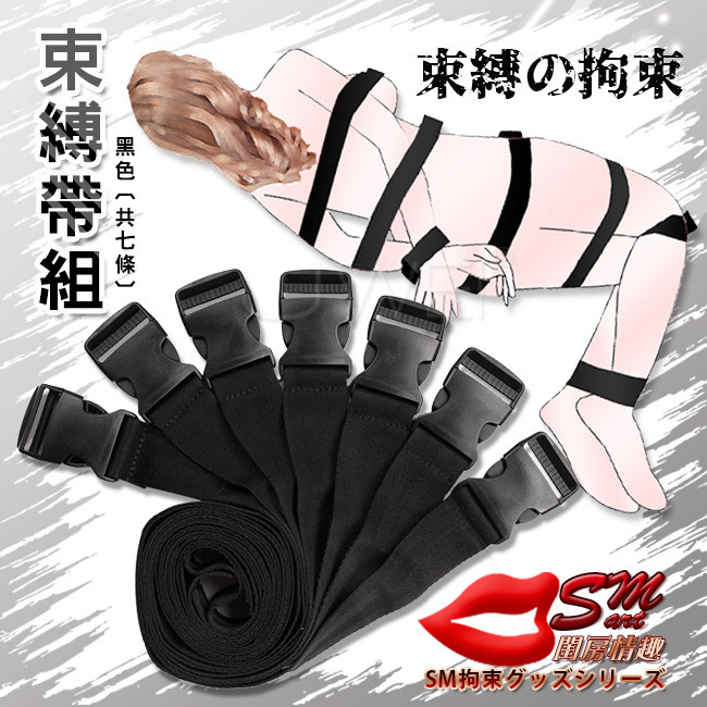 SM 閨房調教遊戲 ‧ 束縛の拘束 身體束縛帶組 - 黑色(共七條)