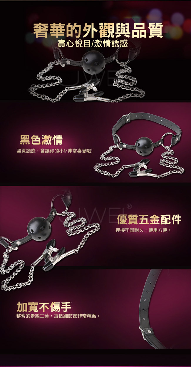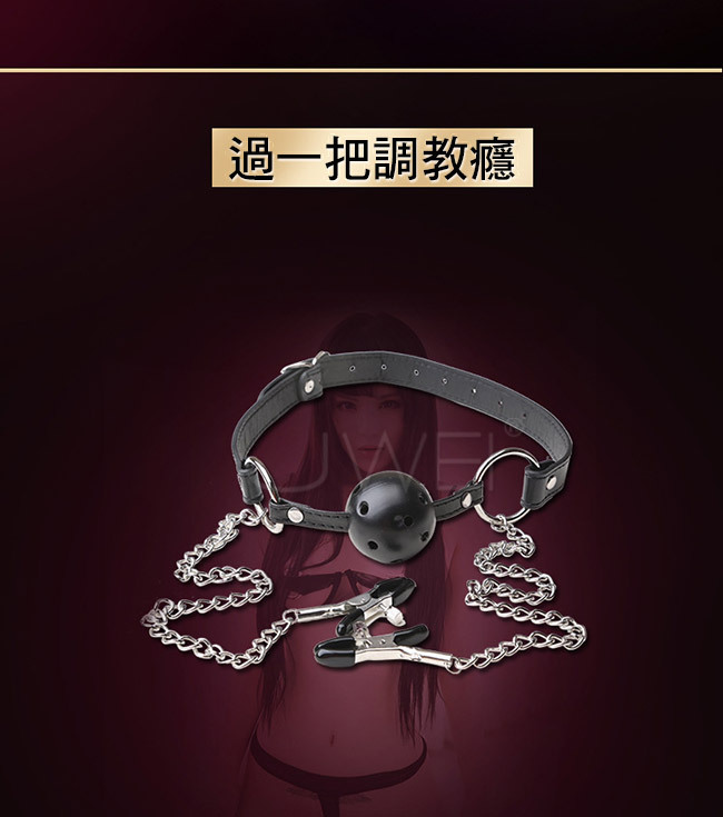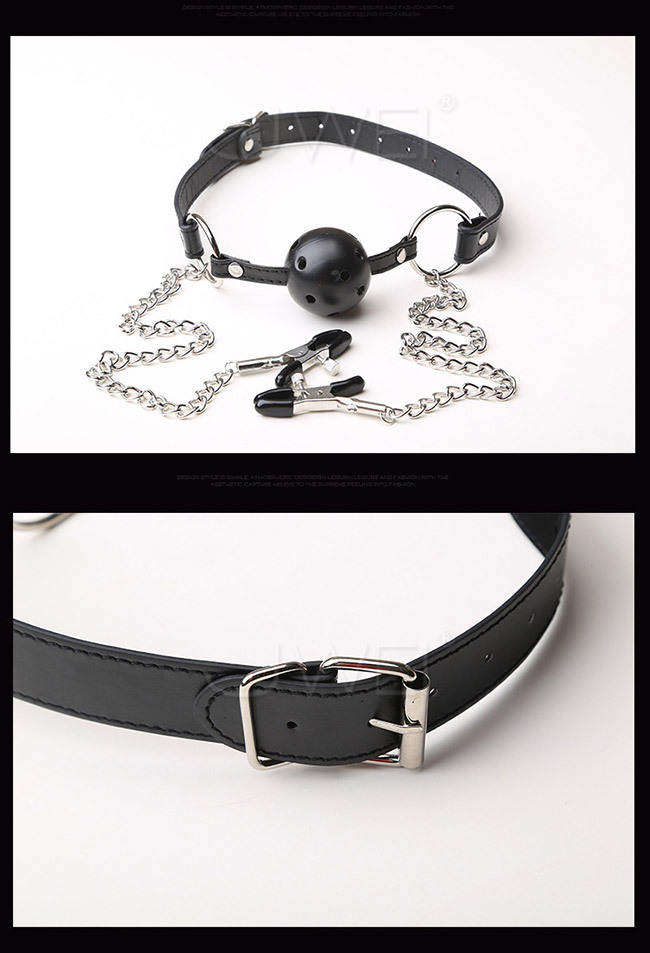 SM 閨房調教遊戲 ‧網眼口塞+不銹鋼金屬鏈乳夾(豔紅)