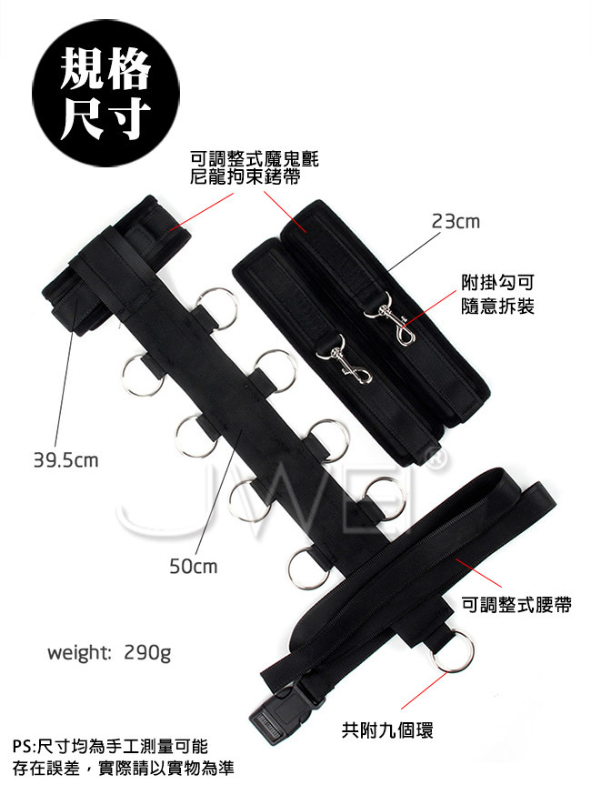商品的玩法千變萬化,各種體位都可使用,不論是正面束縛、背面反手束縛、或是雙腳束縛等,各種進階的玩法與體位都著進階的SM玩家們來一一開發體驗,使用起來會有很驚人的視覺效果,最極致的感官剌激,挑起你的性慾用於性愛行動中,體驗不一樣的情趣........
