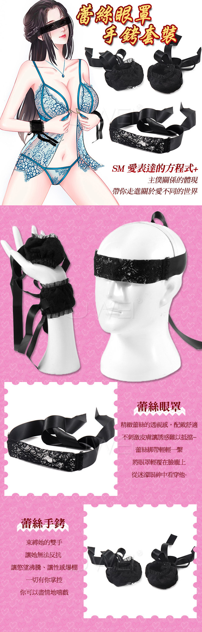 18SM閨房情趣.蕾絲眼罩+蕾絲手銬