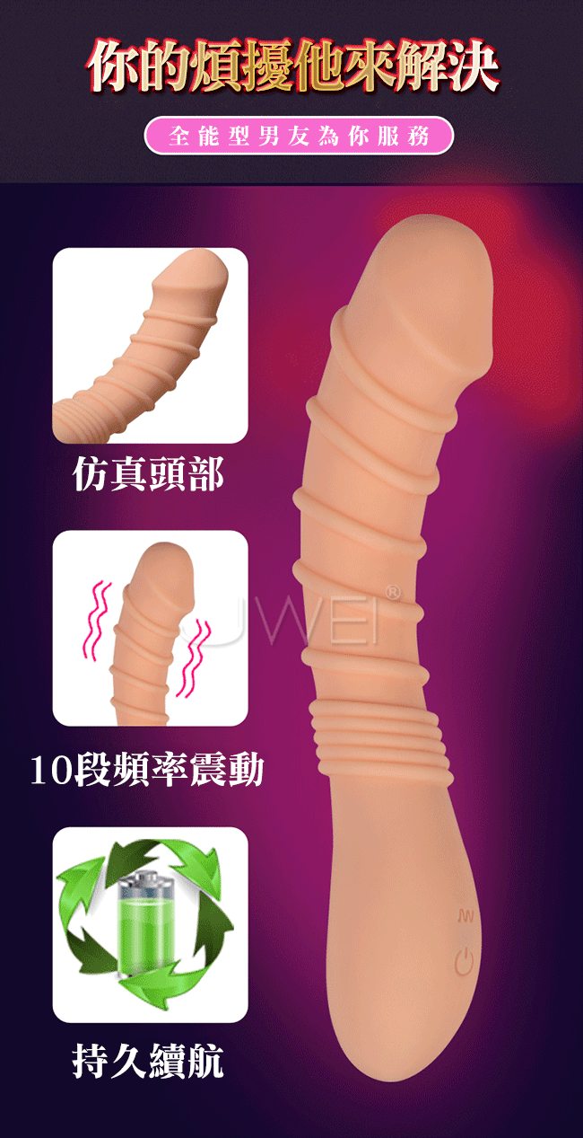 女性高潮的靈魂伴侶比他更猛享受速度與激情的狂野。全能型男友為你服務仿真頭部設計與10段頻率調節享受不同頻率帶來的快感搭配一鍵爆發,讓您不用出門在家也能體驗不同類型猛男。採用細膩柔軟矽膠,進入舒適不傷女性私處可放心使用唷~