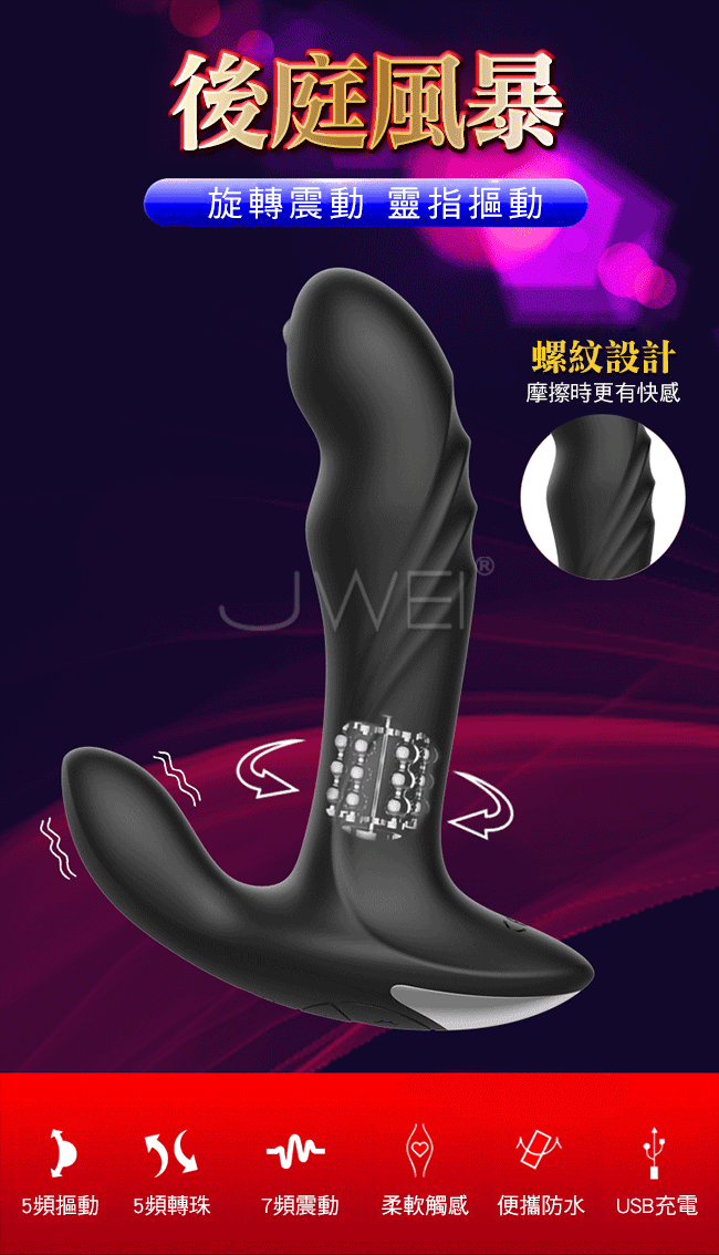 後庭風暴旋轉震動猶如靈指摳動,棒身採螺紋設計讓摩擦時更有快感唷!!5頻強勁轉珠與5種模擬真人手指摳動頻率,讓您輕鬆體驗快感。再搭配7頻強勁震動酥麻快感層層來襲,告別單一一邊旋轉 一邊震動讓高潮一陣一陣。不同場景有不一樣的體驗玩法,前列腺快感會讓您玩一次難忘體驗飄飄欲仙的快感~