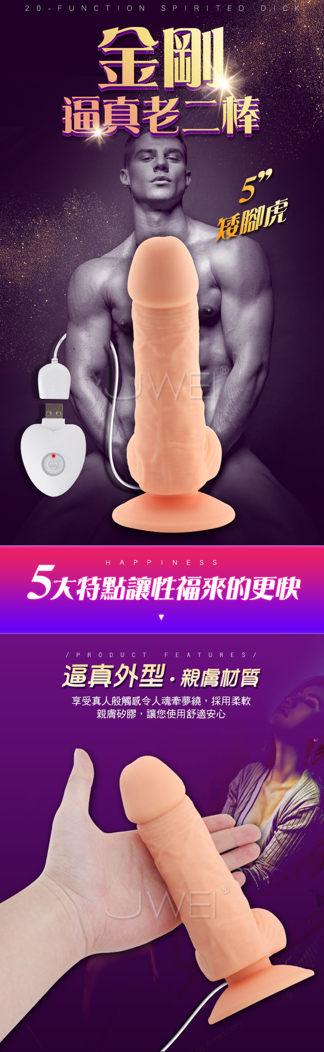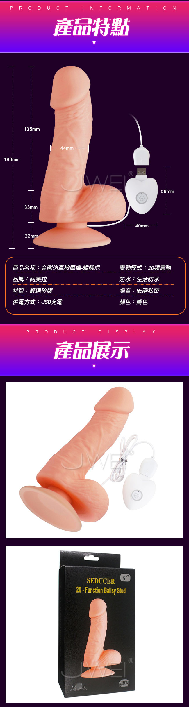APHRODISIA.金剛系列SEDUCER-20段變頻逼真老二按摩棒-矮腳虎(5吋)
