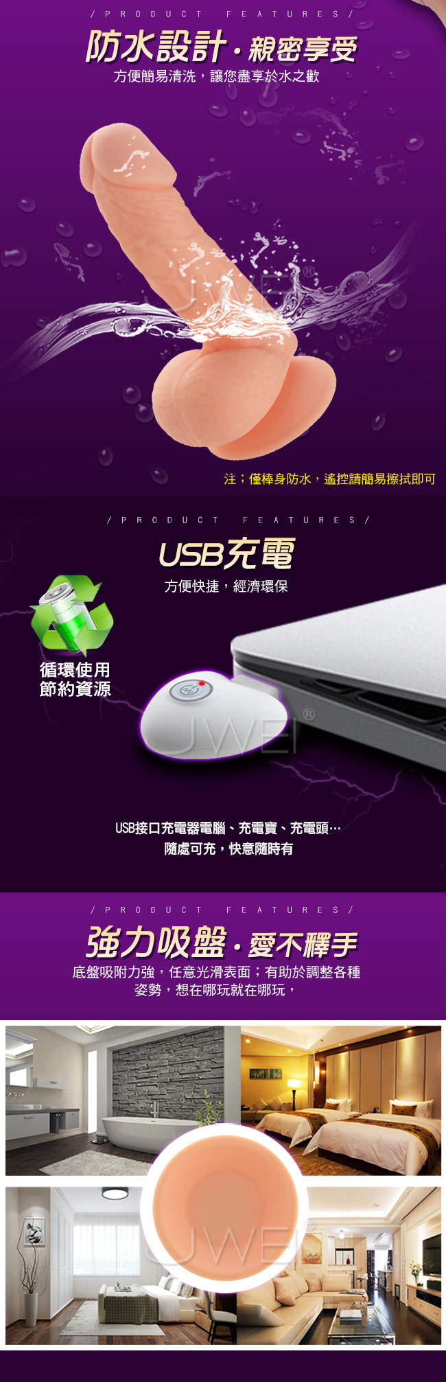 金剛逼真老二按摩棒擁有逼真的外表,採用柔軟親膚矽膠讓您感受猶如真人般的體驗。共20段旋轉變頻強勁震力任您選擇,狂攪蜜穴達到高潮使您欲罷不能。還擁有貼心防水設計讓您方便清洗,盡享魚水之歡。底部擁有強力吸盤,吸附力極強,讓您想在哪玩就在哪玩喔~