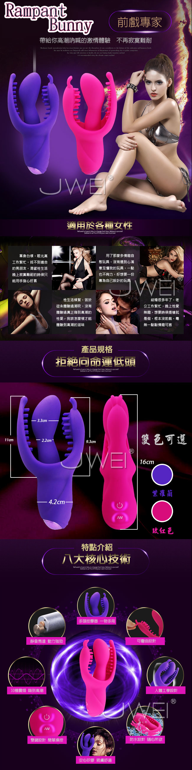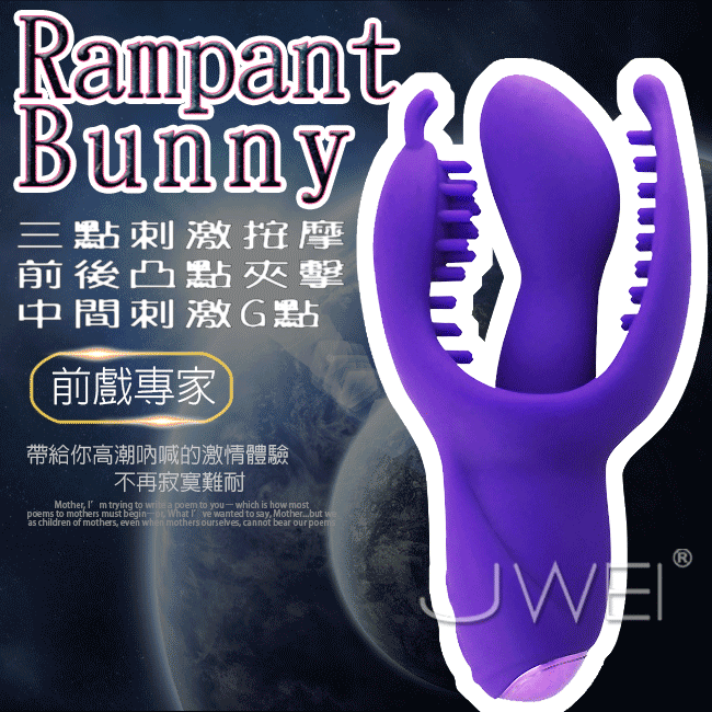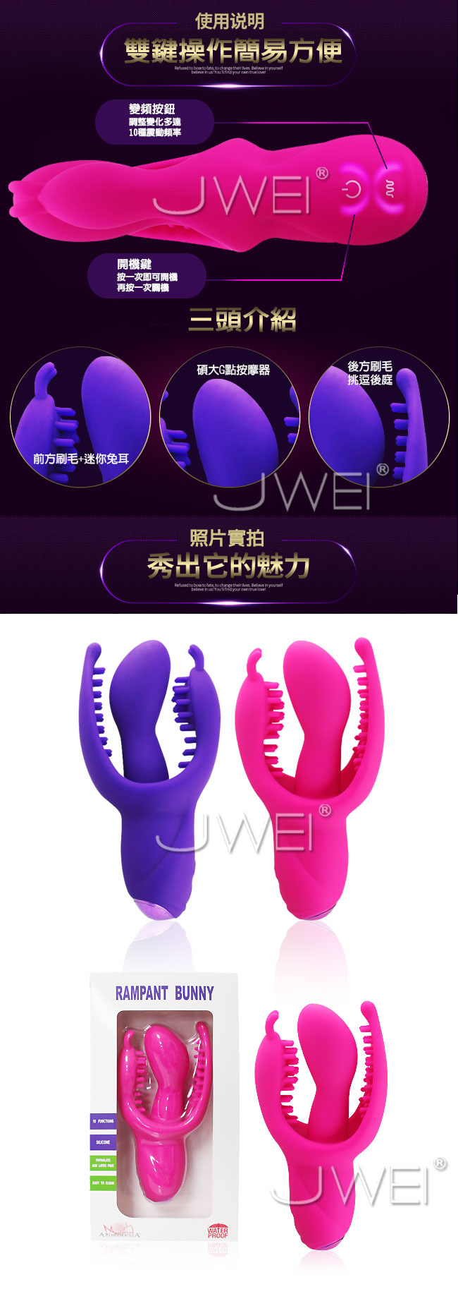 APHRODISIA.RAMPANT BUNNY 三點齊攻 前戲專家挑逗G點潮吹按摩棒(紫)