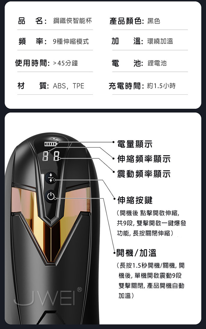 鋼鐵俠.智能伸縮深喉吮吸飛機杯