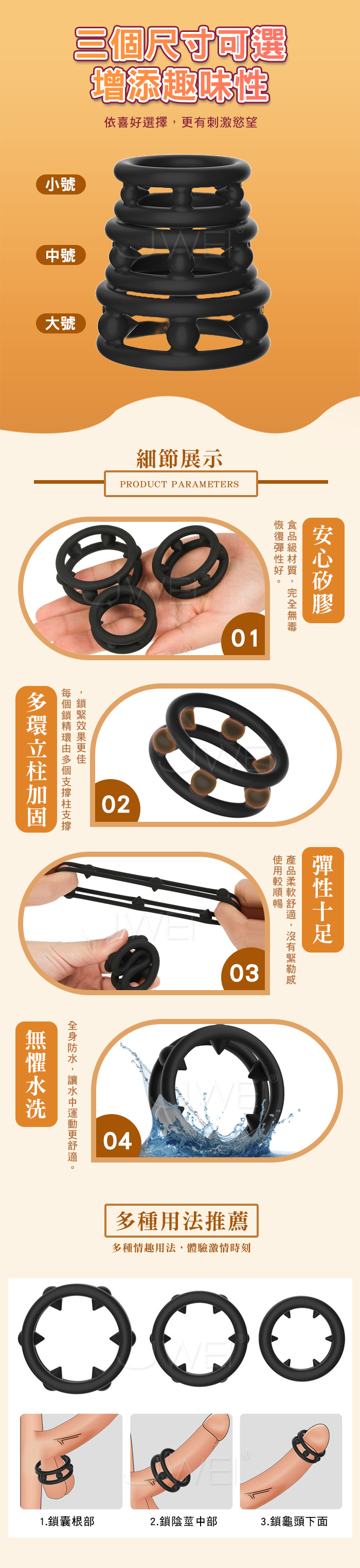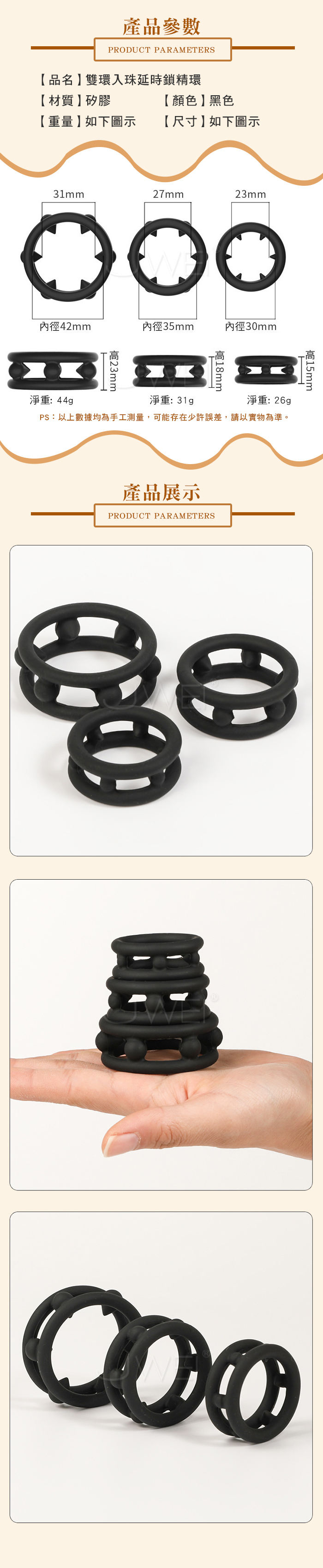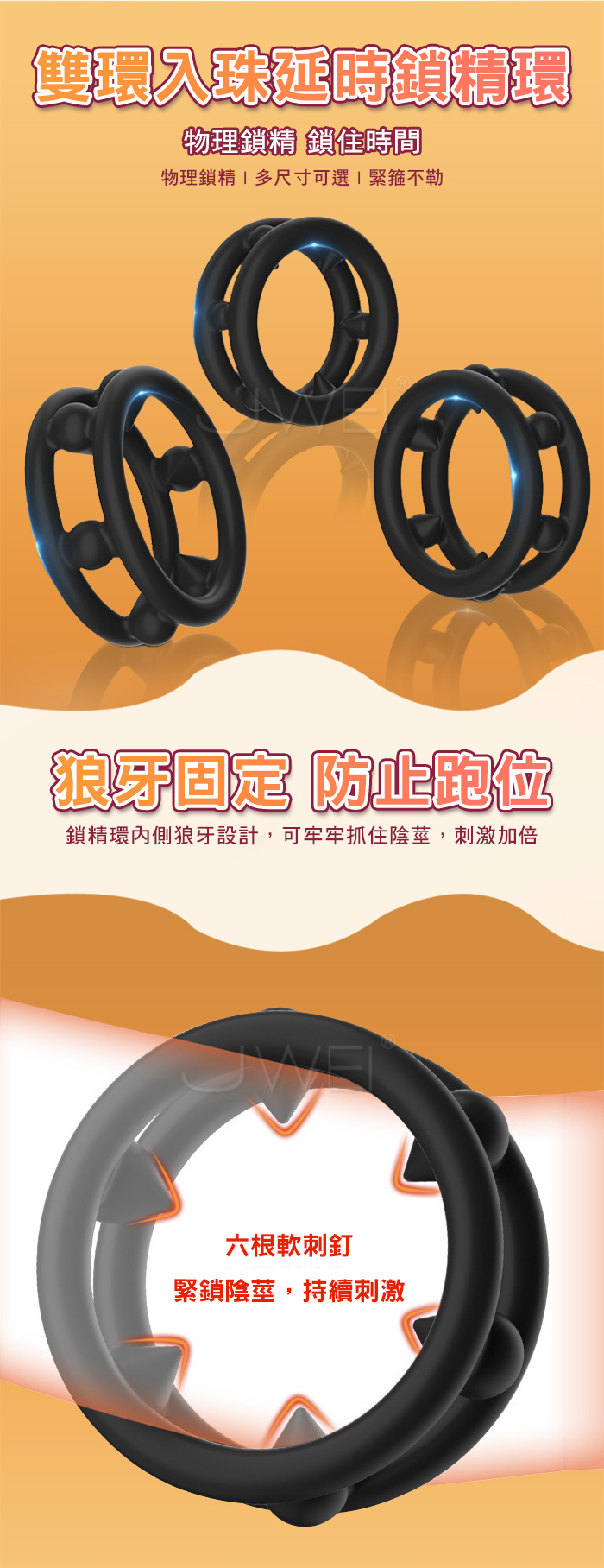 SEXLOVE.雙環入珠延時鎖精環- 小 (內徑3cm)