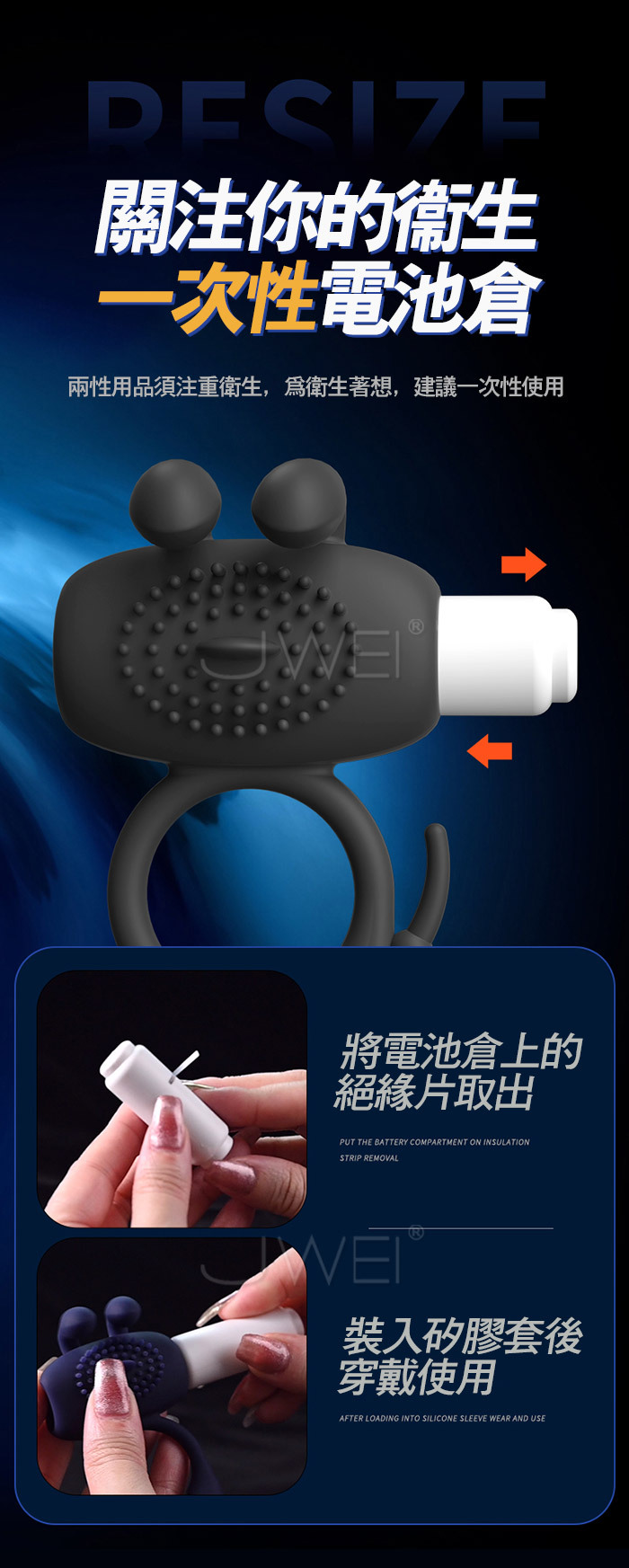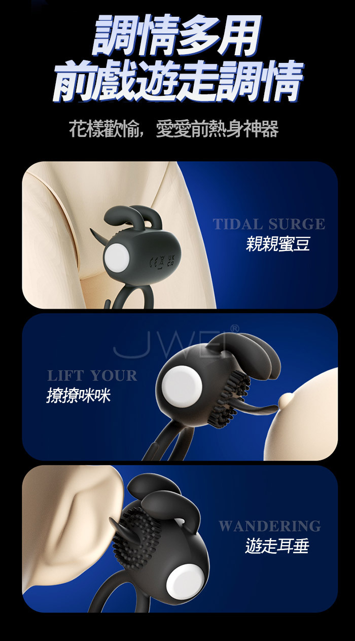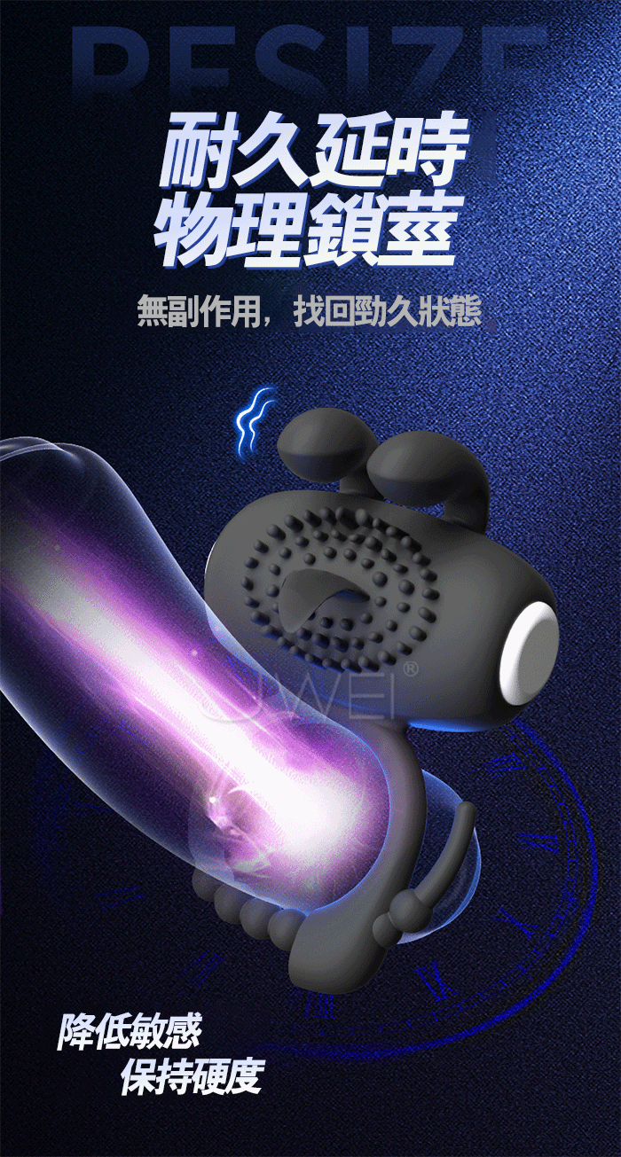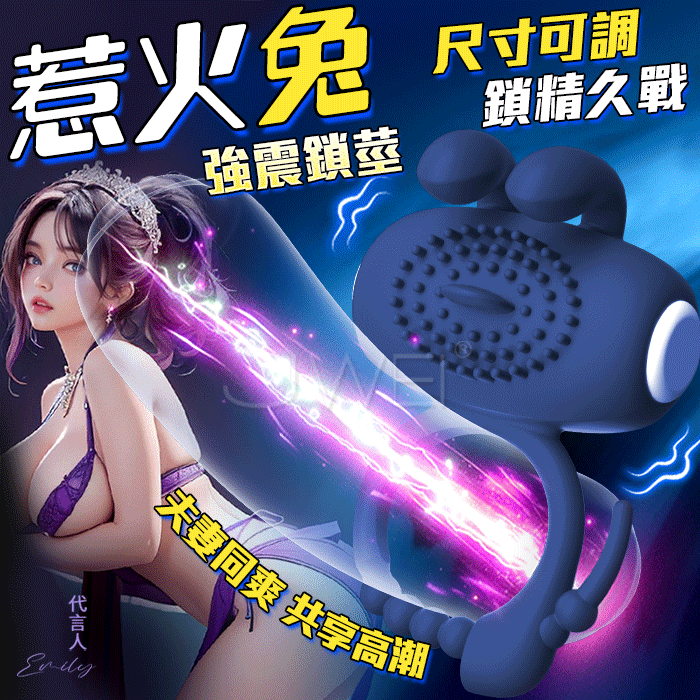 來樂 LILO 惹火兔.雙耳多重觸擊點固精調整震動鎖精環 -深藍色