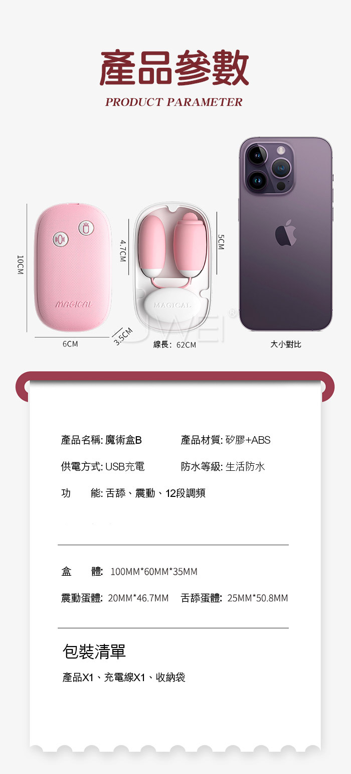 來樂 LILO 魔術盒. 12頻撩舔蜜豆入體震陰雙跳蛋﹝磁吸盒+USB充電﹞雙跳蛋B款