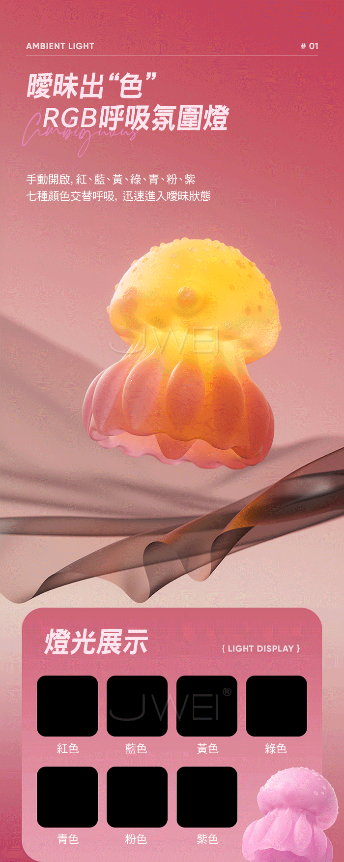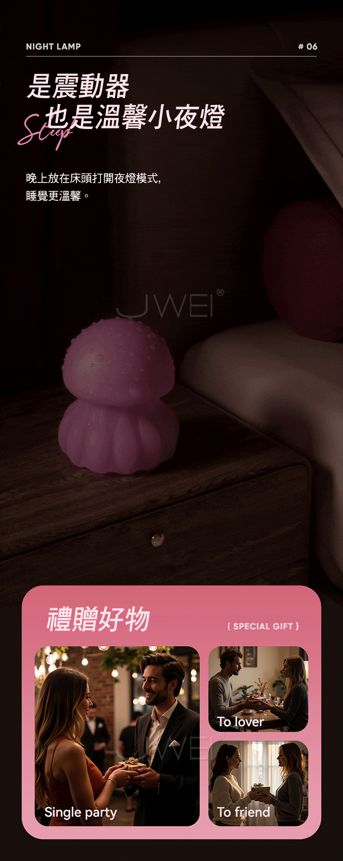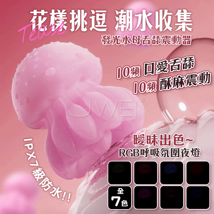 發光水母.10頻口愛舔舐+酥麻震動 RGB呼吸氛圍夜燈 舌舔震動器