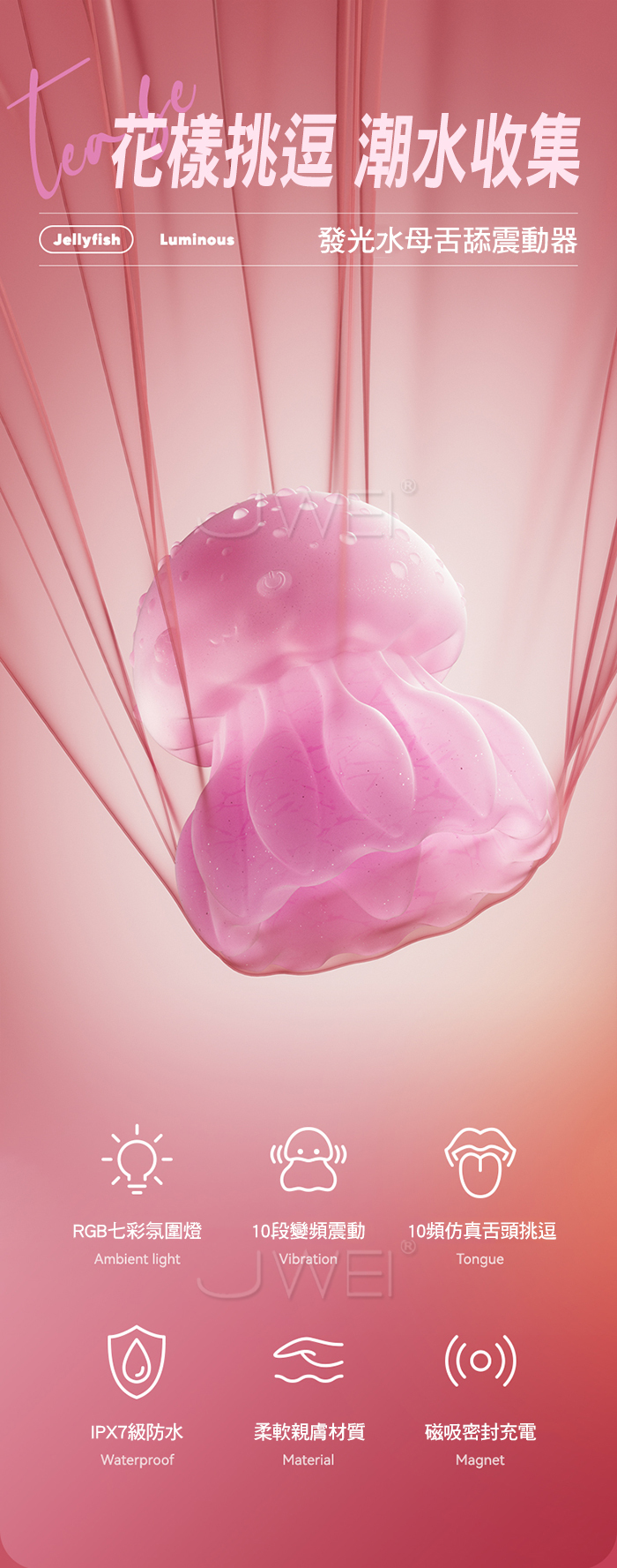 花樣挑逗 潮水收集,發光水母舌舔震動棒。