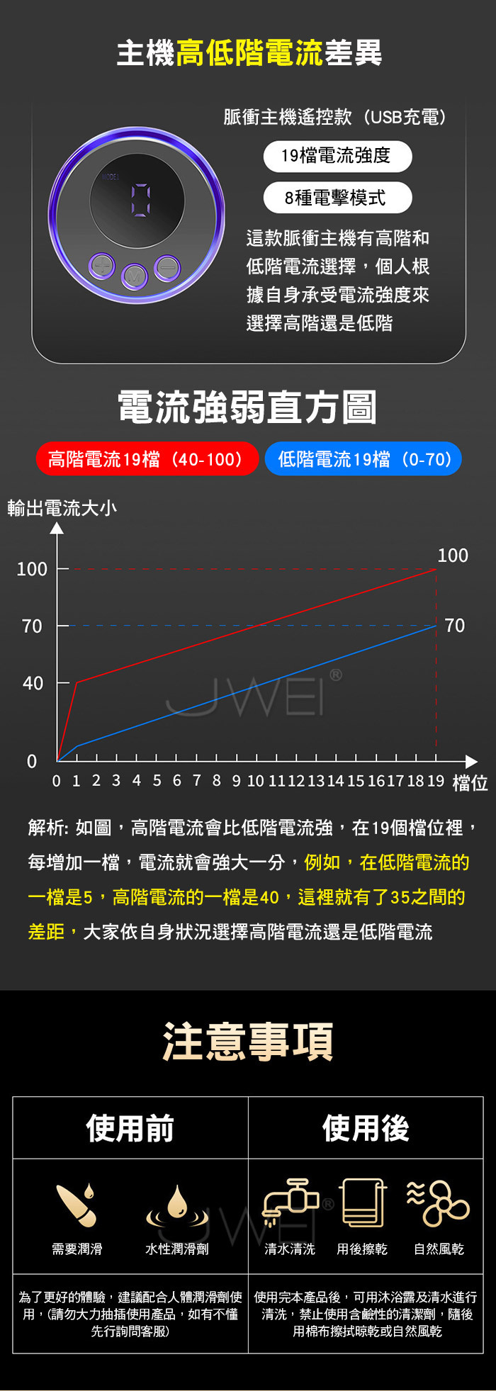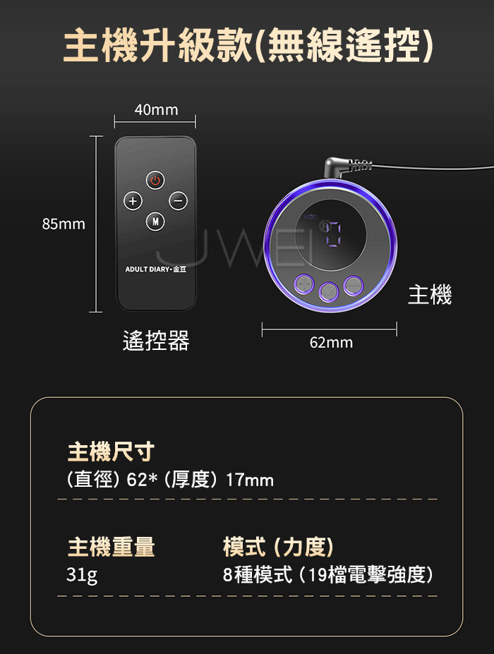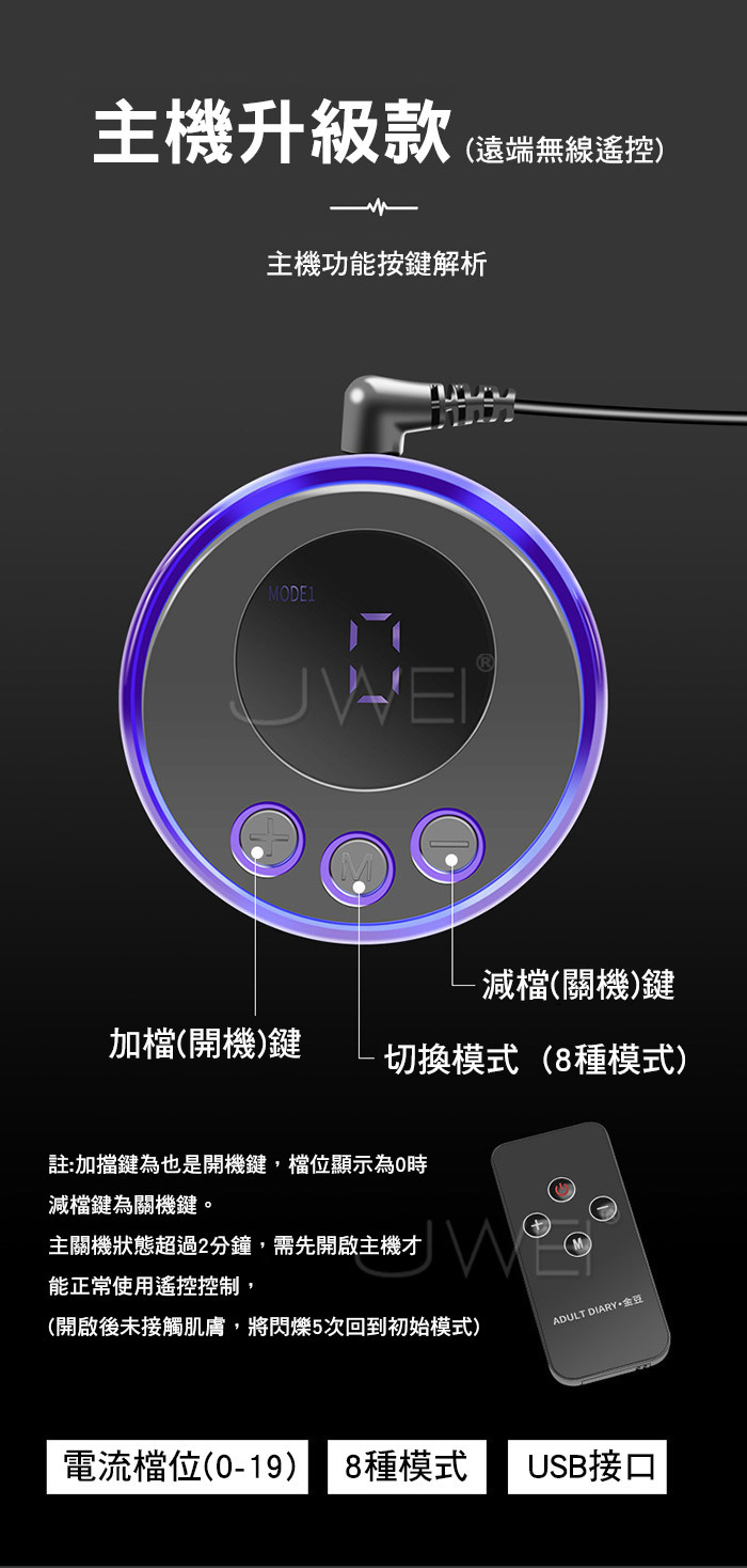 15米內無線遙控,8種電擊模式,19檔電擊強度