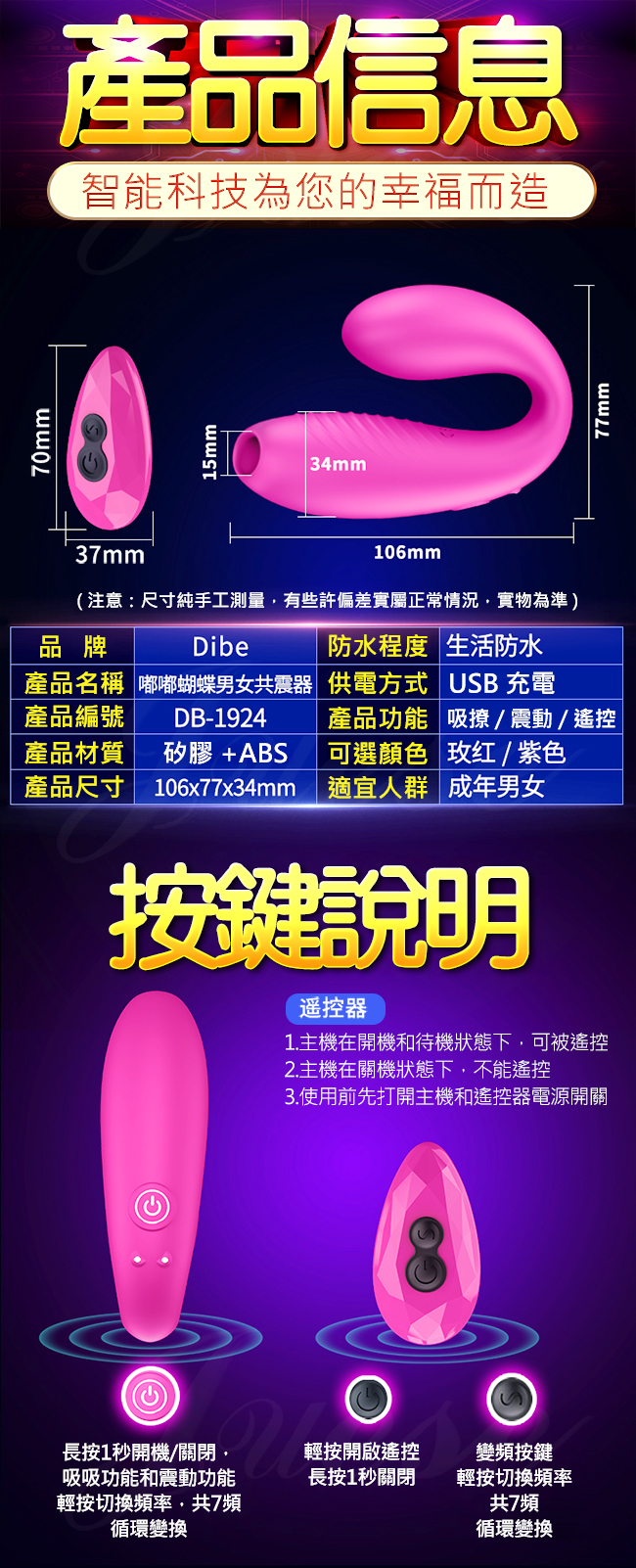 Dibe-嘟嘟共震 7段變頻吸震遙控矽膠跳蛋