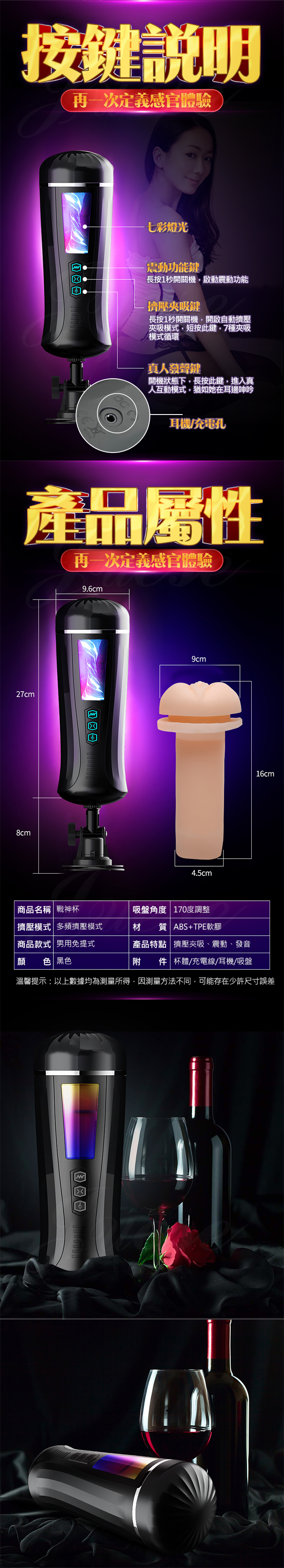 Dibe-戰神 七彩燈光智能叫床夾吸震動自慰杯