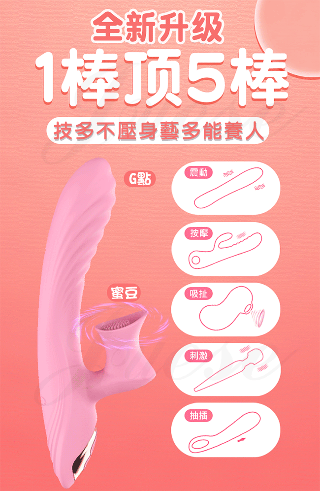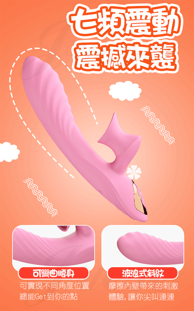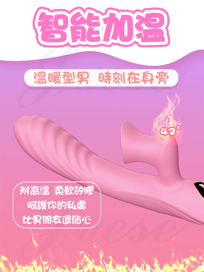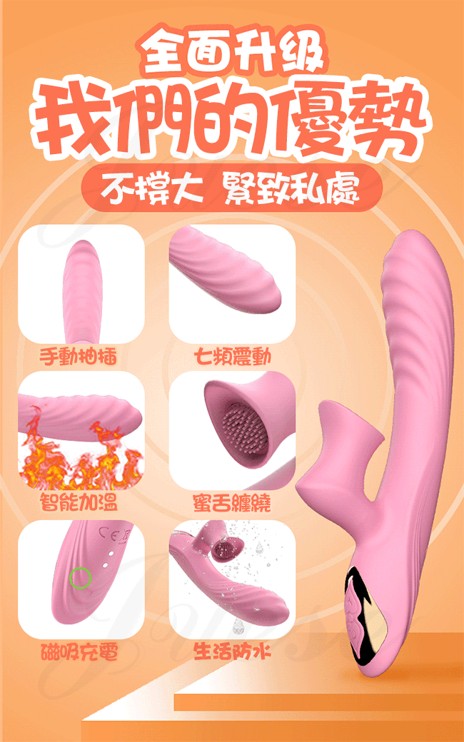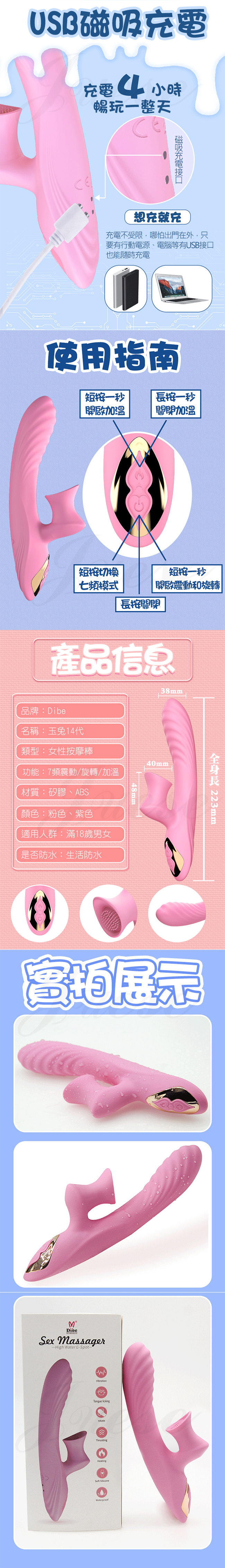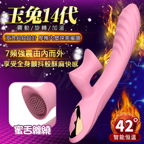 Dibe-玉兔14代 7段變頻密舌旋轉加溫震動充電式按摩棒-粉