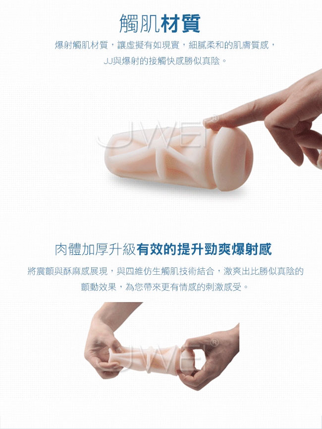 用身體說話讓青春做一杯子證明,爆射觸肌材質,讓虛擬有如現實,細膩柔和的肌膚質感,JJ與爆射的接觸快感勝似真陰。肉體加厚升級將震顫與酥麻感展現,與四維仿生觸肌技術結合,激爽出比勝似真陰的顫動效果,為您帶來更有情感的刺激感受。