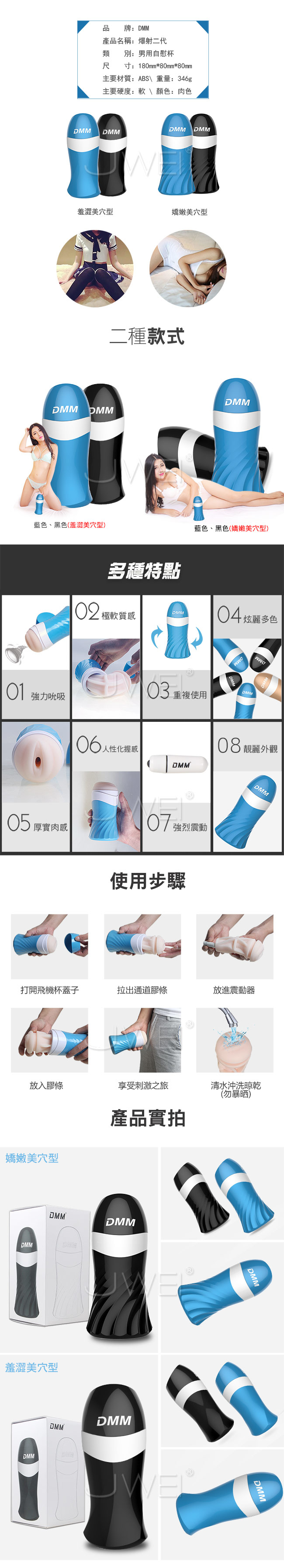 DMM.爆射二代 擬真震動飛機杯-少女羞澀美穴型(藍色)