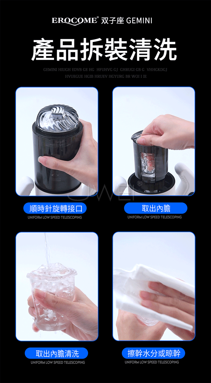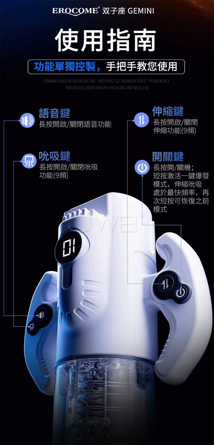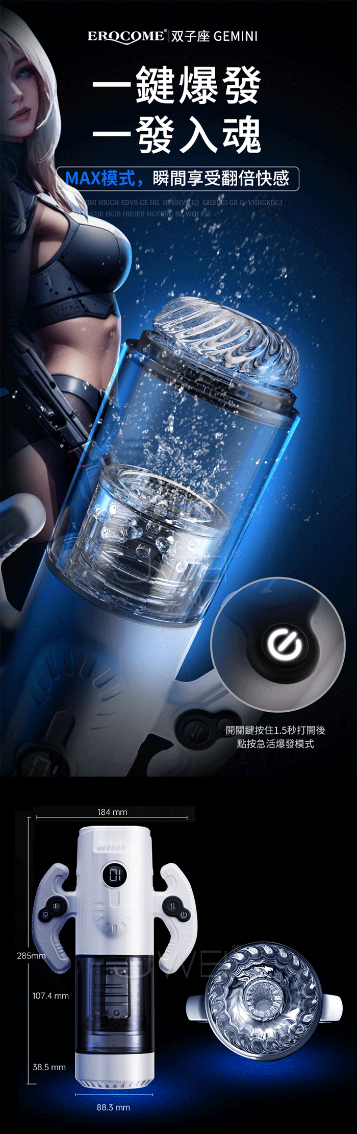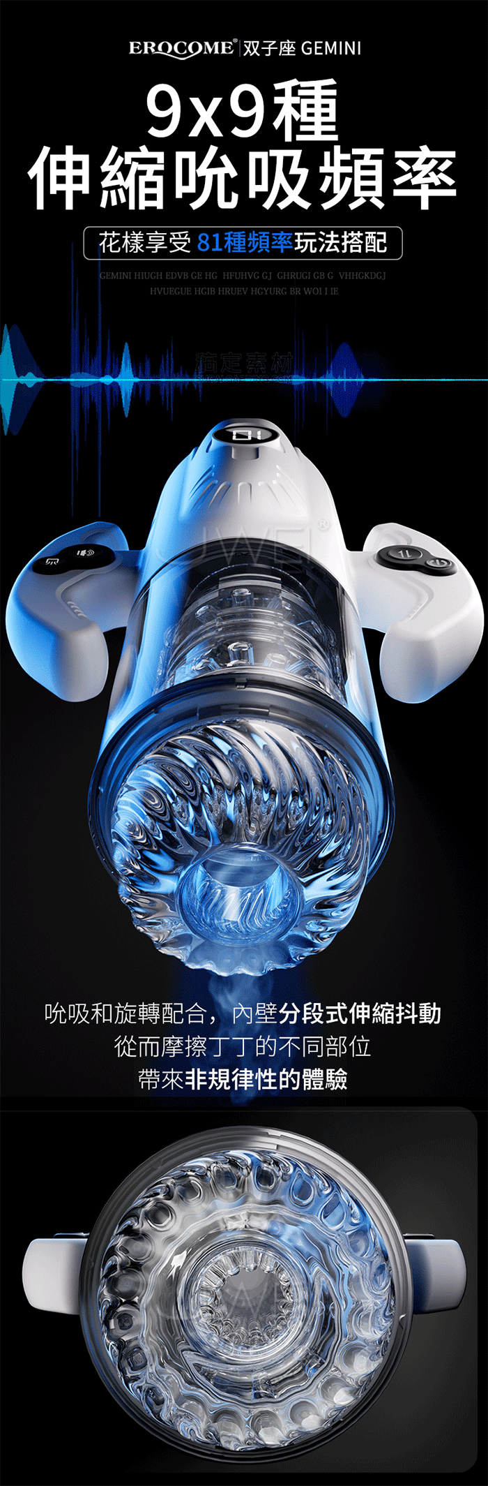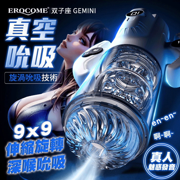 EROCOME伊珞. GEMINI雙子座 9X9伸縮/旋轉/吮吸 雙手柄設計叫床 無極變速震動伸縮加熱飛機杯 (一鍵爆發+液晶顯示+軟彈肉粒蜜道+耳機+USB充電)