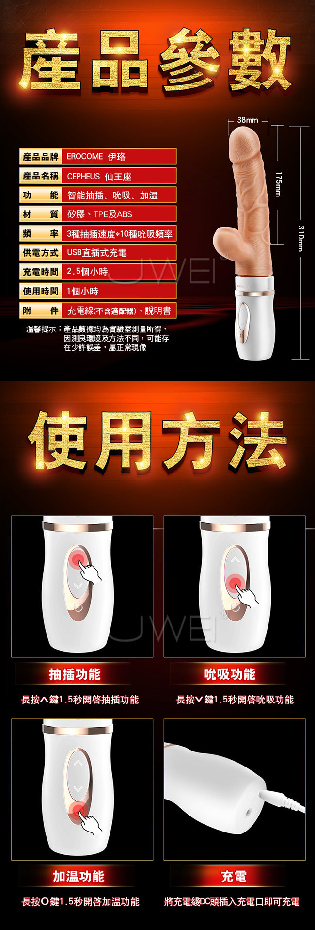 EROCOME伊珞.仙王座CEPHEUS 3x10段伸縮吸吮變頻全自動仿真加溫按摩棒