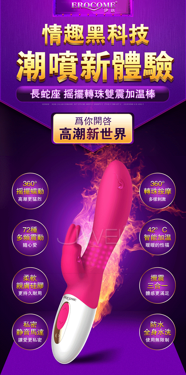 長蛇座搖擺轉珠雙震加溫按摩棒,讓您體驗潮噴新體驗為您開啟高潮新世界~擁有6頻正反旋轉加12段變頻震動共72種多重組合邊攪邊震,360°全方位強力攪動讓您欲罷不能。棒身柔軟可揉捏強勁有力卻不失溫柔及全自動智能加溫讓您徹底感受暖暖的真實快感,這一切只為了讓您有更好的體驗。採USB充電快速便捷,讓您縱享激情時刻,還擁有防水靜音功能讓您盡情享受魚水之歡。