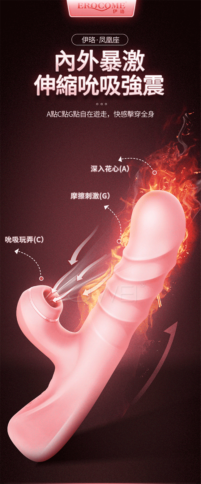 EROCOME伊珞.PHOENIX 鳳凰座 伸縮吸吮強震三合一 內外爆激高潮密碼按摩棒-Pink