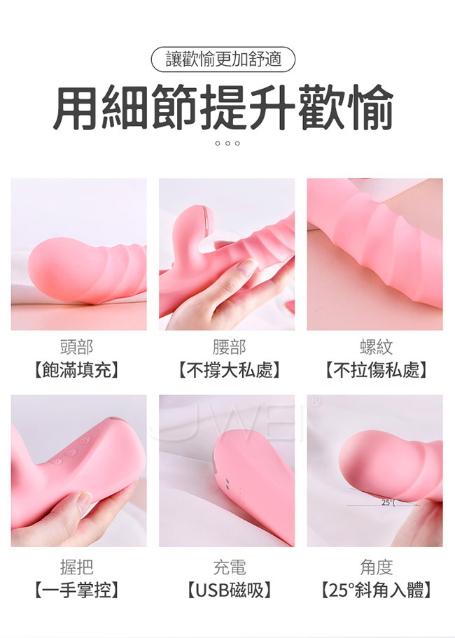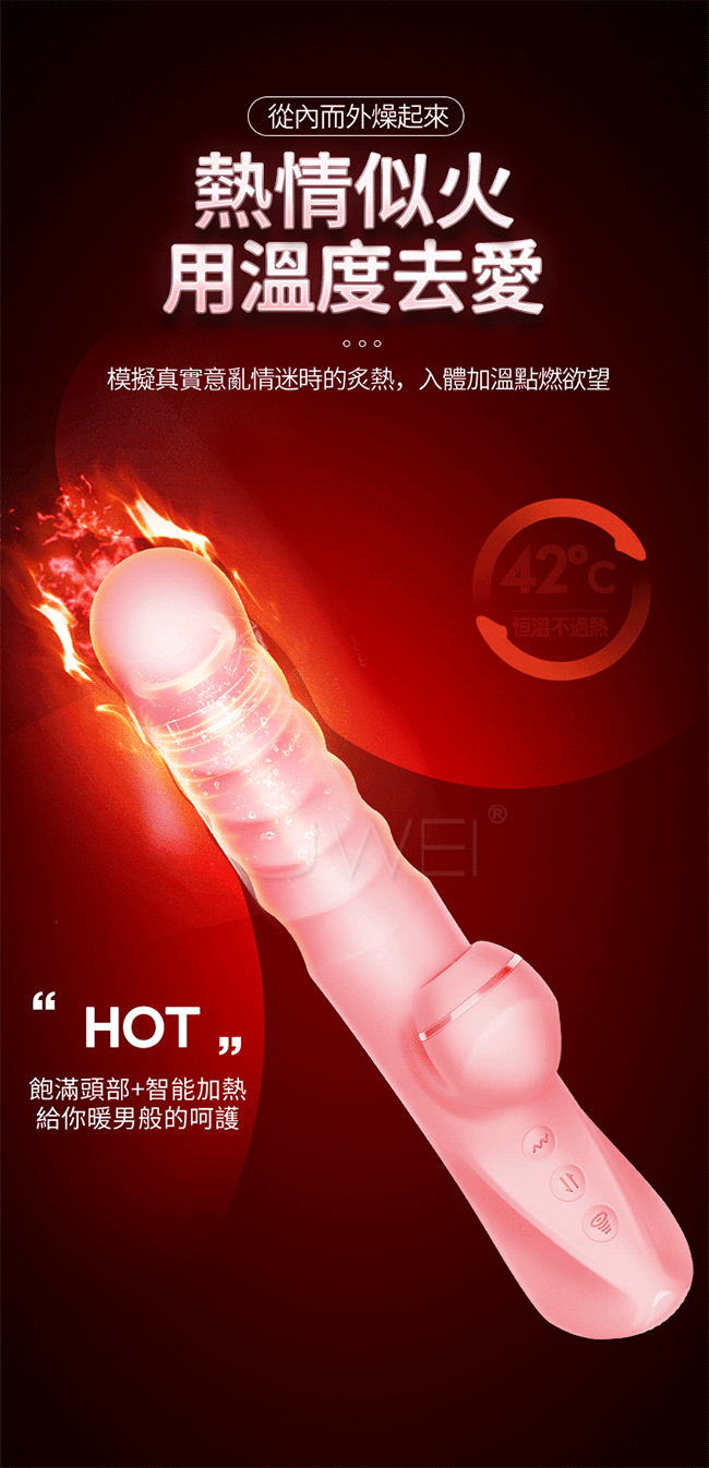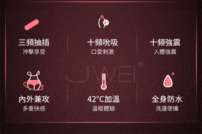 內外暴激伸縮吮吸強震,A點C點G自在遊走,快感擊穿全身;三頻抽插衝擊享受;十頻吮吸口愛刺激;十頻入體強震,激烈貼合花心;十頻精湛口技,精準刺激蜜豆;內外兼攻多重快感;42°C加溫溫暖體驗全身防水,洗護便攜。