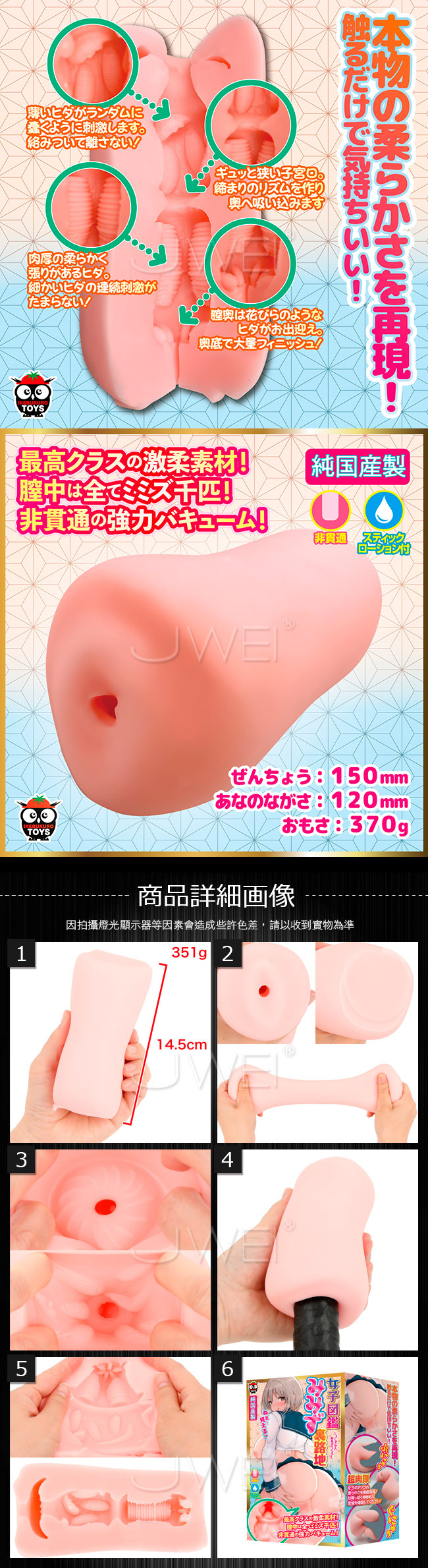 370gの純国内製、非貫通の強力バキュームな中型ホール。本物に近い柔かさを再現した超肉厚激柔素材です!! 先ず薄いヒダがランダムに配置されあなたのムスコに絡みついて離しません。そして数匹のミミズが流動し柔軟素材と合わせてあの究極のミミズ千匹を体感しているかの感覚に! キュッと締め付ける子宮口と肉厚・花びらヒダとまるで本物の女子としているような夢心地を体感ください。 スティックローション付。