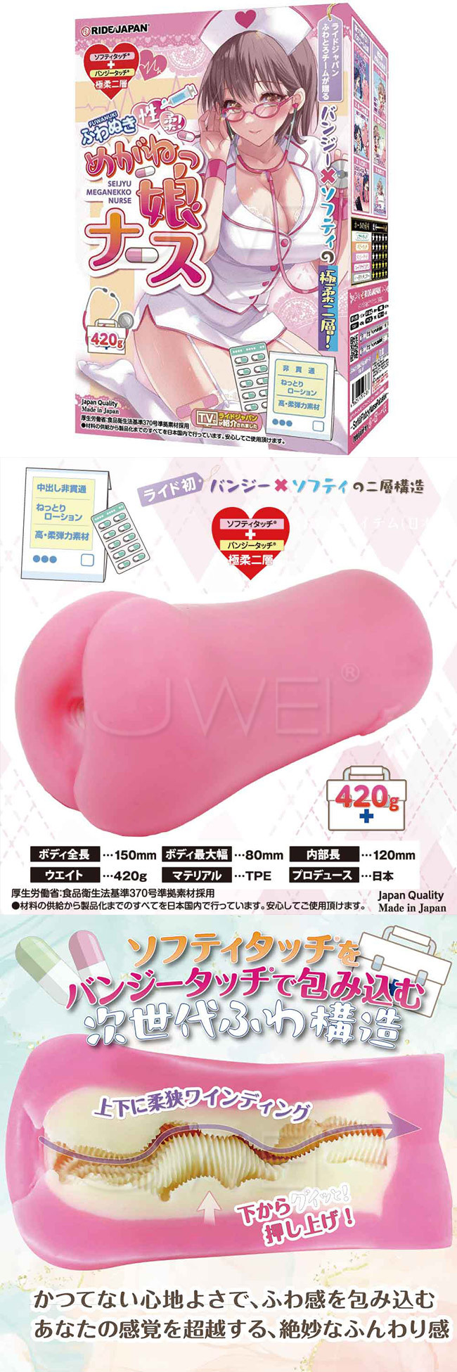 日本原裝進口RIDE JAPAN.軟綿綿護士極柔二層男用自慰套