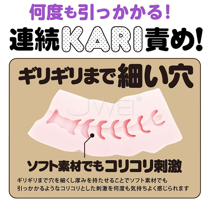 あなたに合わせる、湾曲ホールMAGARU!!湾曲したボディによって自分の好きなスポットにしっかり刺激、ほどよい跳ね返りと握りやすいボディで使いやすさと気持ちよさを重視致しました。 今回は細穴無限コリコリホール、やさしく包み込む圧迫感のない柔らかい素材を使用しているのにコリコリとした刺激を何度もお楽しみいただけます。ギリギリまで穴を細く厚みをもたせることでソフト素材でも引っかかる気持ちよさをしっかり感じれます。