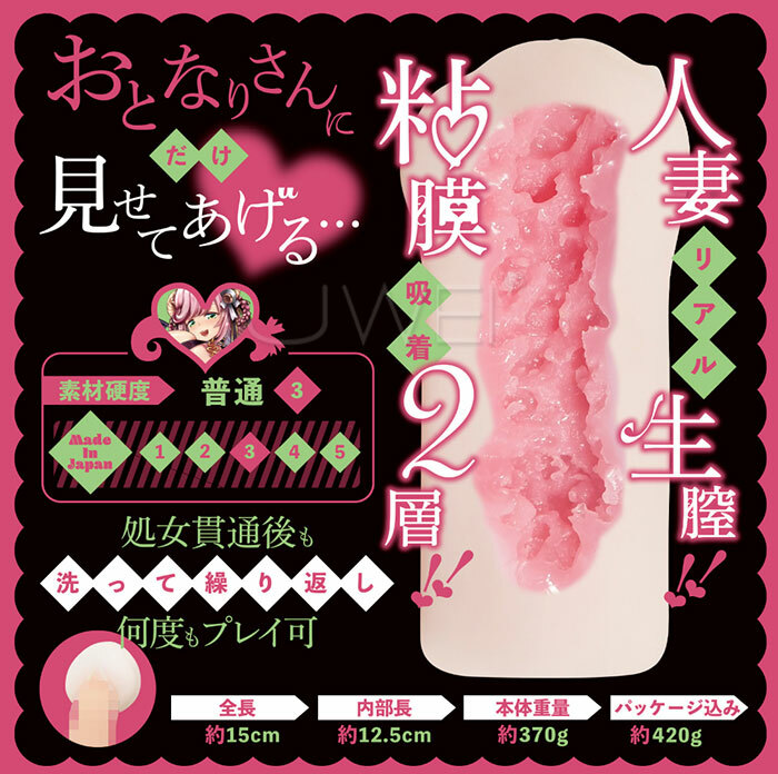 人妻なのに処女膜付き?特殊性癖を持った人妻の初めてをいただいちゃう!という背徳感を楽しめる非貫通オナホで、内部の「肉ヤスリ」を感じさせる膣圧と有機的な粘膜質でリアルさとオナホ的快感のバランスにチャレンジした他にない挿れ心地が絶品!