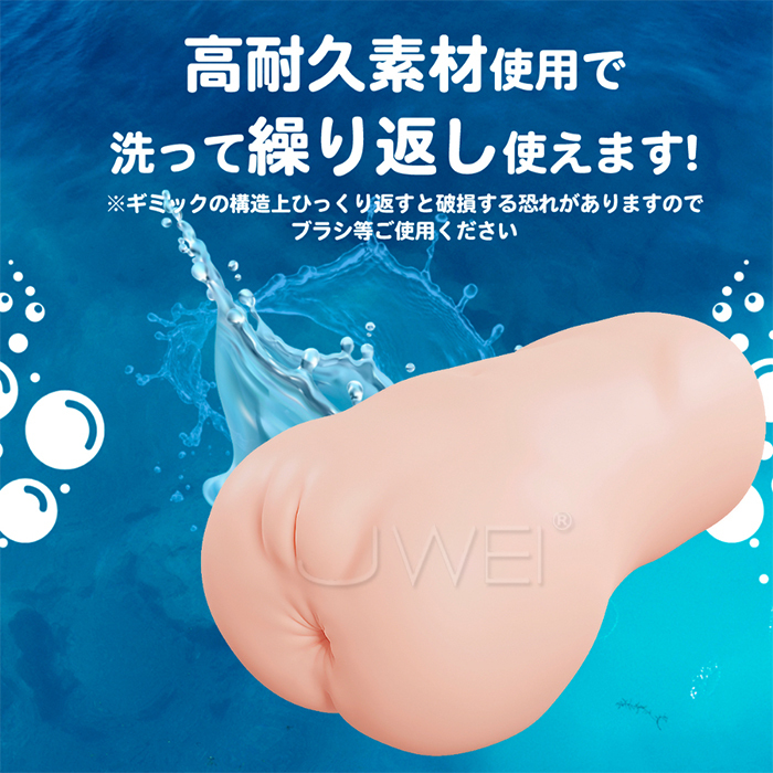 このリングを配置することで、後ろ特有の挿入感と締め付け感により近づけることができ、バック感を疑似体験できます。 さらにオナホ内部の溝のギミックを研究し、ツルっと受け入れてくれるあの感覚からの、後ろの穴のエッチなずるずると引っ張られる感触を、連続する窪みの緩急で再現しました。