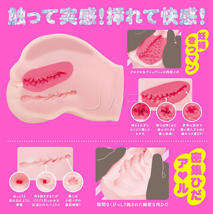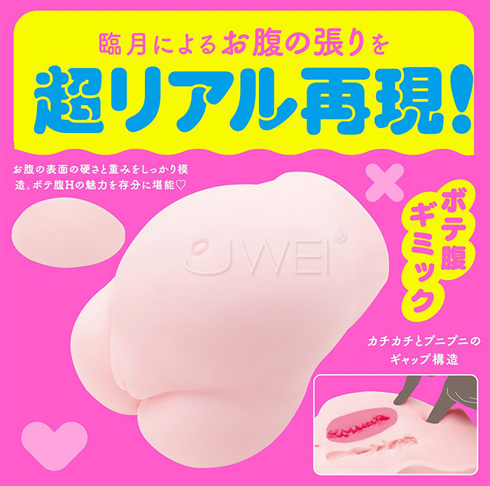 究極のフェチ解禁♪リアルな重み&密着&圧迫&快感! お腹の重みが気持ちイイ♪極上圧迫体験!遠慮無用の妊婦肉交♪超重量約4.0kgのリアルボテ腹の体型を実現化っ! 張りのある肌とプニプニお肉の2層構造に、お腹の表面の硬さと重みをしっかり模造、ボテ腹Hの魅力を存分に堪能できるボテ腹ギミックを内蔵! 待ちきれずにピンクに熟したモモ穴の妖婦きつマンは、ゴロゴロ&ブニュブニュの肉粒イボで突けば突くほど絡んでたぎる極上快感で窄み形状で奥に挿入するほど締めつけ感がUPします! 密集ひだア●ルは、隙間なくびっしり施された細密な肉ひだでねっとりと包み込むように密着、 突き抜きするたびゾリゾリ引っかかる圧迫ひだスパイラルで奥には小粒イボの窮屈刺激を味わえます!触って実感!挿れて快感!臨月によるお腹張りを超リアル再現! 腹を圧して更に締め付け&刺激UP!直接肌に触れるものだから、