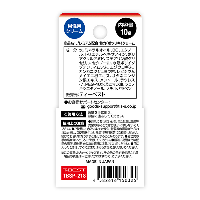 日本原裝進口T-Best.勃力クリーム男用人蔘配方助勃乳霜 - 10ml