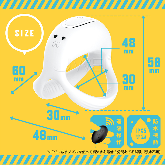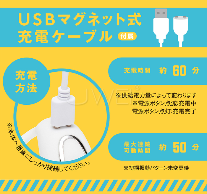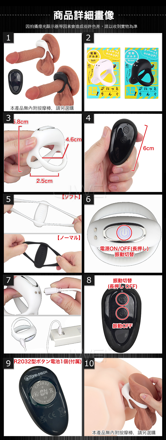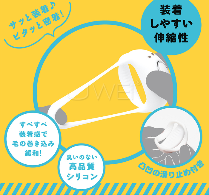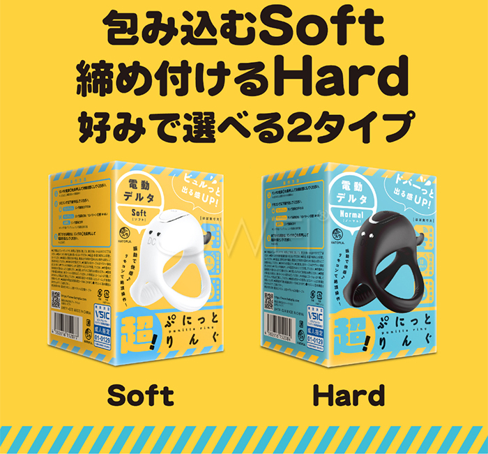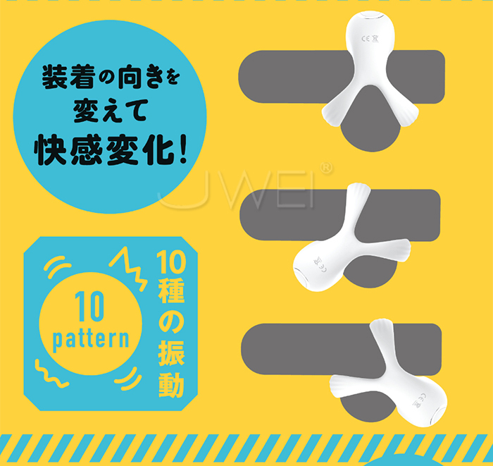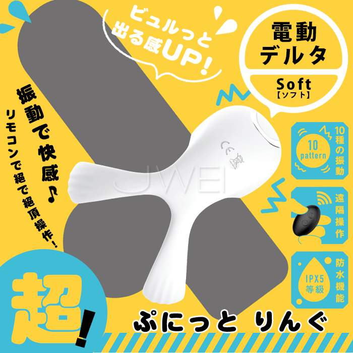 超!ぷにっとりんぐから電動verが登場。敏感振動で快感&絶頂誘引!更にリモコンで絶頂タイミングをコントロール可能!サッと装着♪ピタッと密着!はずれにくい弾力性で根元を3点締めしてくれるデルタ形状のノーマル仕様。装着の向きを変えれば快感も変化します。臭いのない高品質シリコンで着けてるストレスを軽減!しっかり締め付け、勃ちの維持!萎え気味の竿の補強!イキ抑制!フィット面に施された滑り止めがズレを軽減し、皮戻り防止にも便利です。ドバー っと出る感UPできゅーっと超極楽発射!本体は充電式なのでエコに使用可能。※本体:充電時間約60分※本体:最大連続可動時間約50分(初期振動パターン未変更時)_IPX5等級_10パターン振動_付属品:USBマグネット式充電ケーブル※IPX5:放水ノズルを使って噴流水を最低3分間あてる試験(浸水は不可となります)