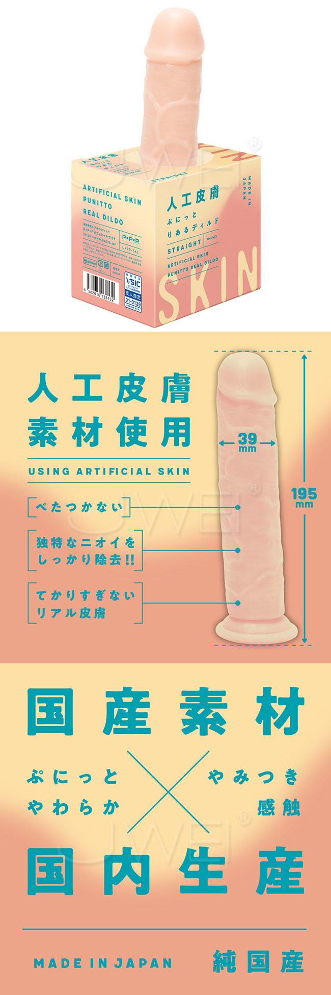 《純国産 人工皮膚 ぷにっとりあるディルド ストレート》 奥までしっかり使いやすいストレートディルドが登場!!よりリアルを追求した、国内生産×国産人工皮膚素材のディルドができました。人工皮膚素材によって、てかりすぎないリアルな皮膚を再現しながら誰にでも安心して使えるようにひとつひとつ丁寧に作っています。ぷにっとやわらかやみつき感触×人工皮膚素材とリアルな造形でこだわりの仕上がり。検査番号:2300155