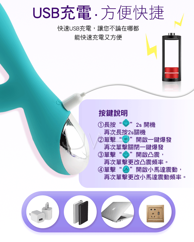 ■功能:7段變頻震動、4段凸起拍打、三馬達設計、防水設計、一鍵爆發