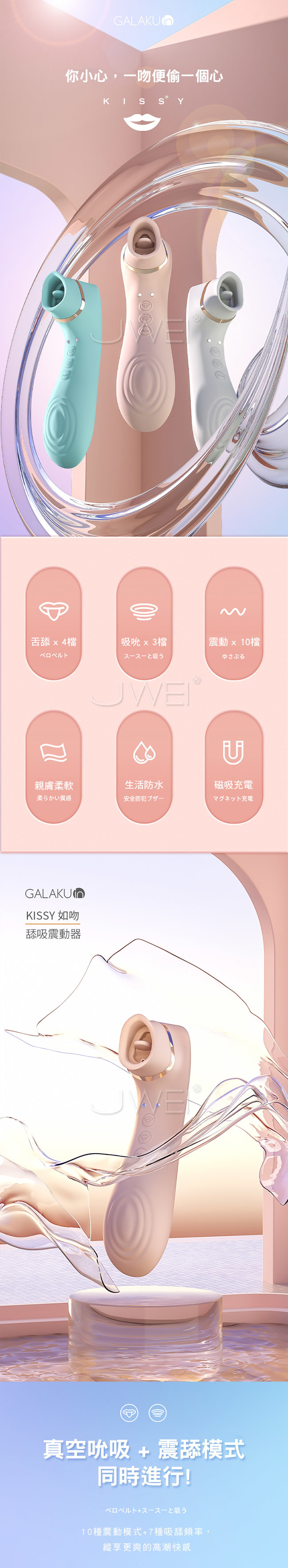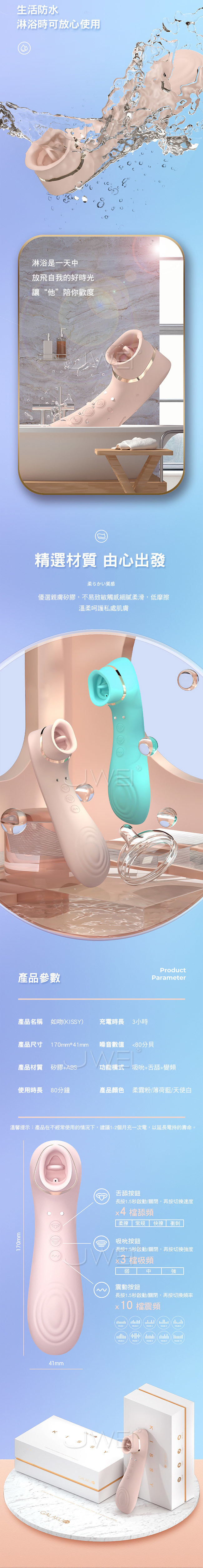 ■特色:10段變頻震動、4檔舔頻、3檔吸頻、生活防水