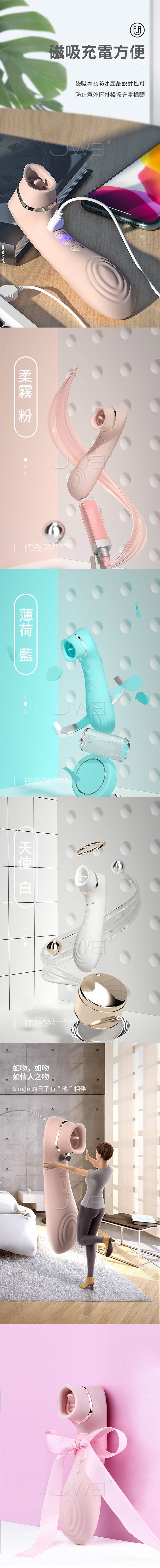 你小心,一吻便偷一個心!!真空吮吸 + 震舔模式同時進行!共10種震動模式+7種吸舔頻率,讓您縱享更爽的高潮快感~棒身採同心波紋設計大面積傳遞高頻震動,深層共震更快速到達頂點。貼心的生活防水讓您淋浴時也可放心使用~優選親膚矽膠,不易致敏觸感細膩柔滑,低摩擦溫柔呵護私處肌膚。