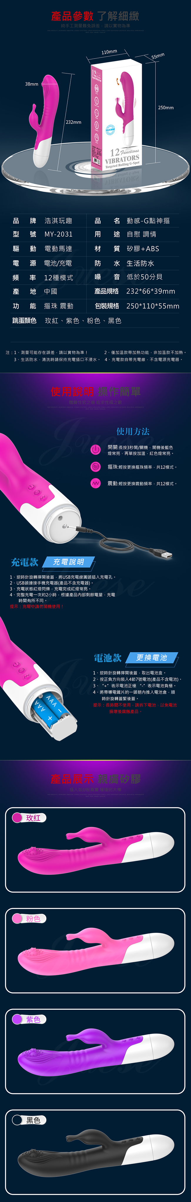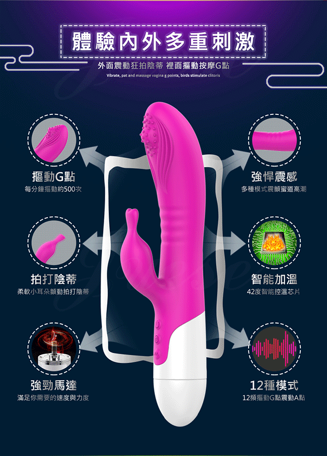 G點神摳 12段變頻摳珠智能加溫充電震動按摩棒-玫紅