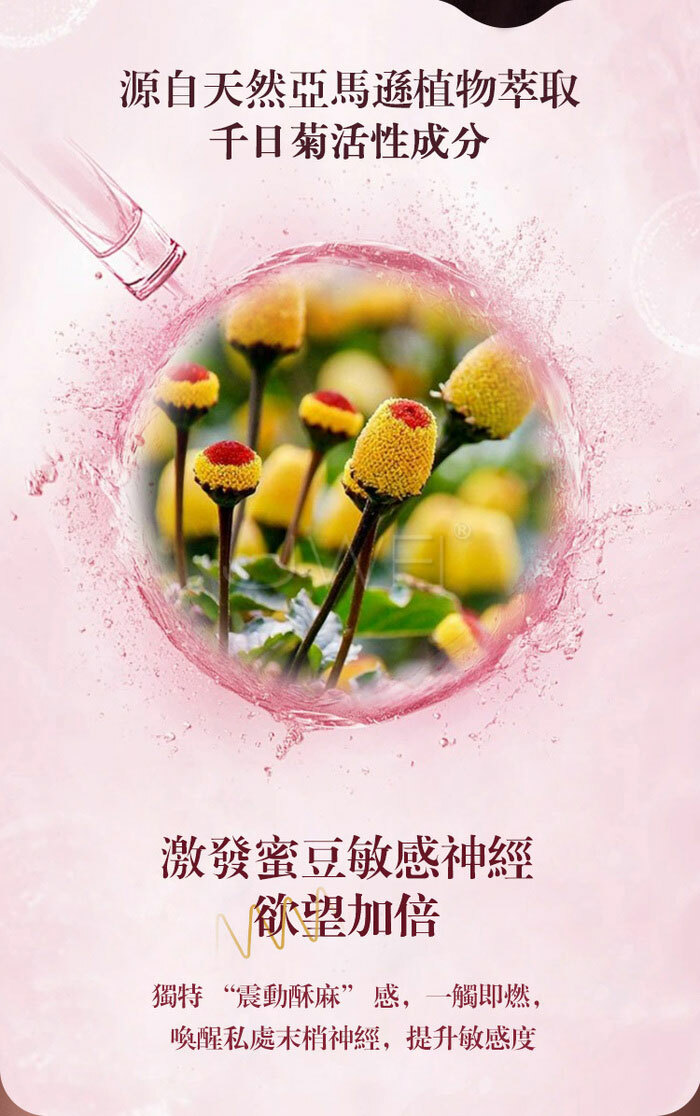 與眾不同的 “震動酥麻” 快感,源自天然亞馬遜植物萃取,千日菊花成分