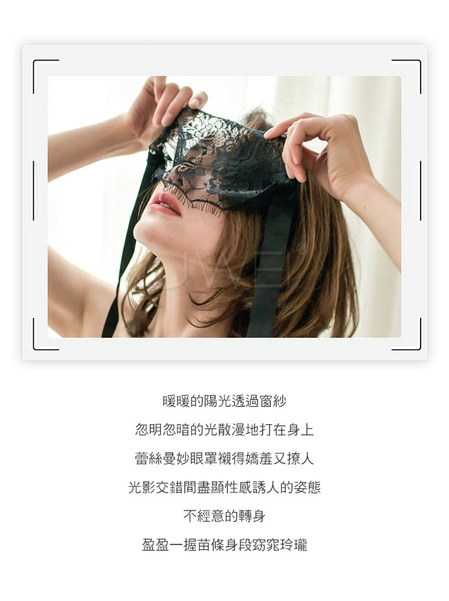 緞面綁帶輕輕一繫將眼罩輕覆在臉龐上,