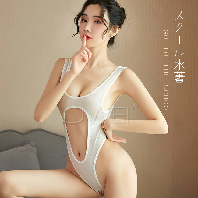 性感解鎖.鏤空誘惑冰絲薄款開襠連身衣(白色)