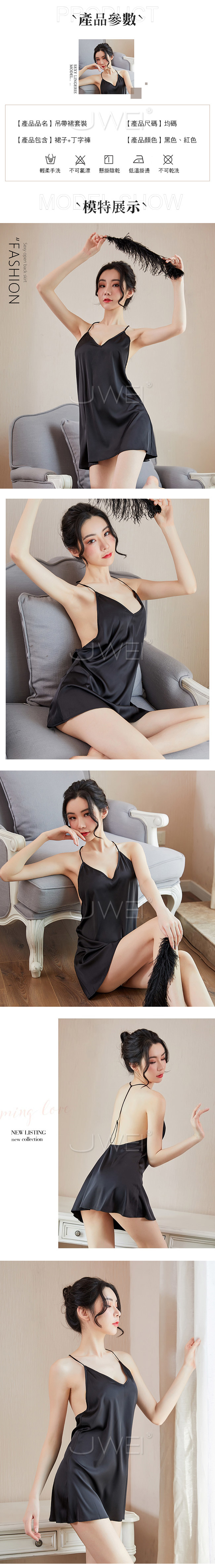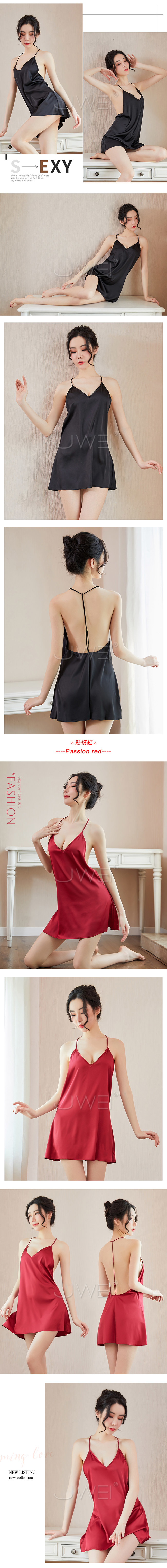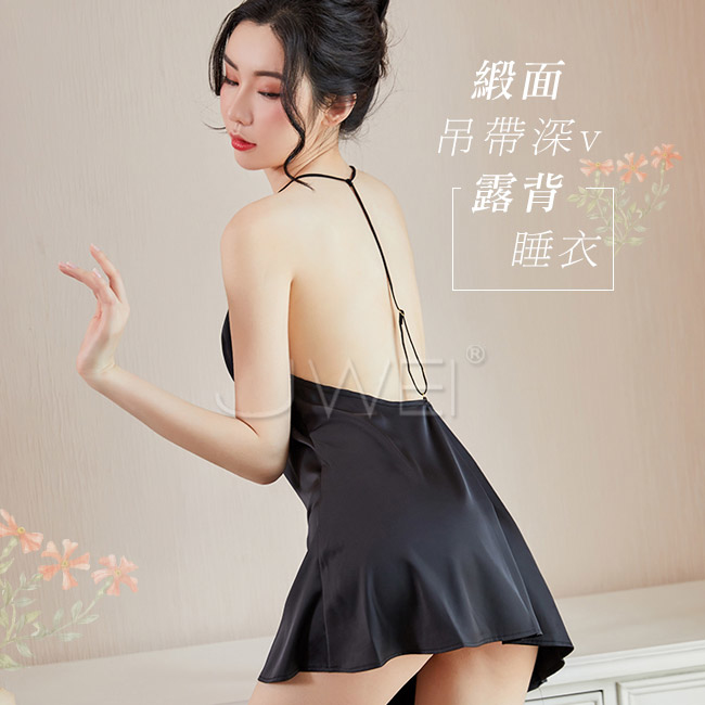 暗香女伶.深v露背緞面吊帶情趣睡衣(黑色)