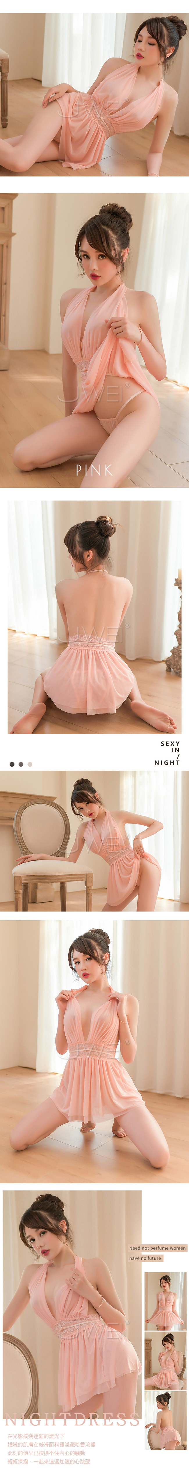 ◇◆偷心夢露.性感裸背深V掛脖睡衣(酒紅色)◆◇
